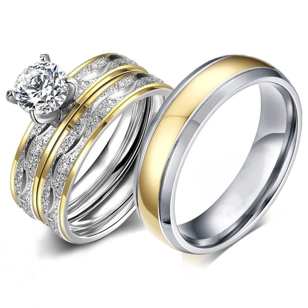 Glam Simple Style Stainless Steel Gemstone Couple Rings Set