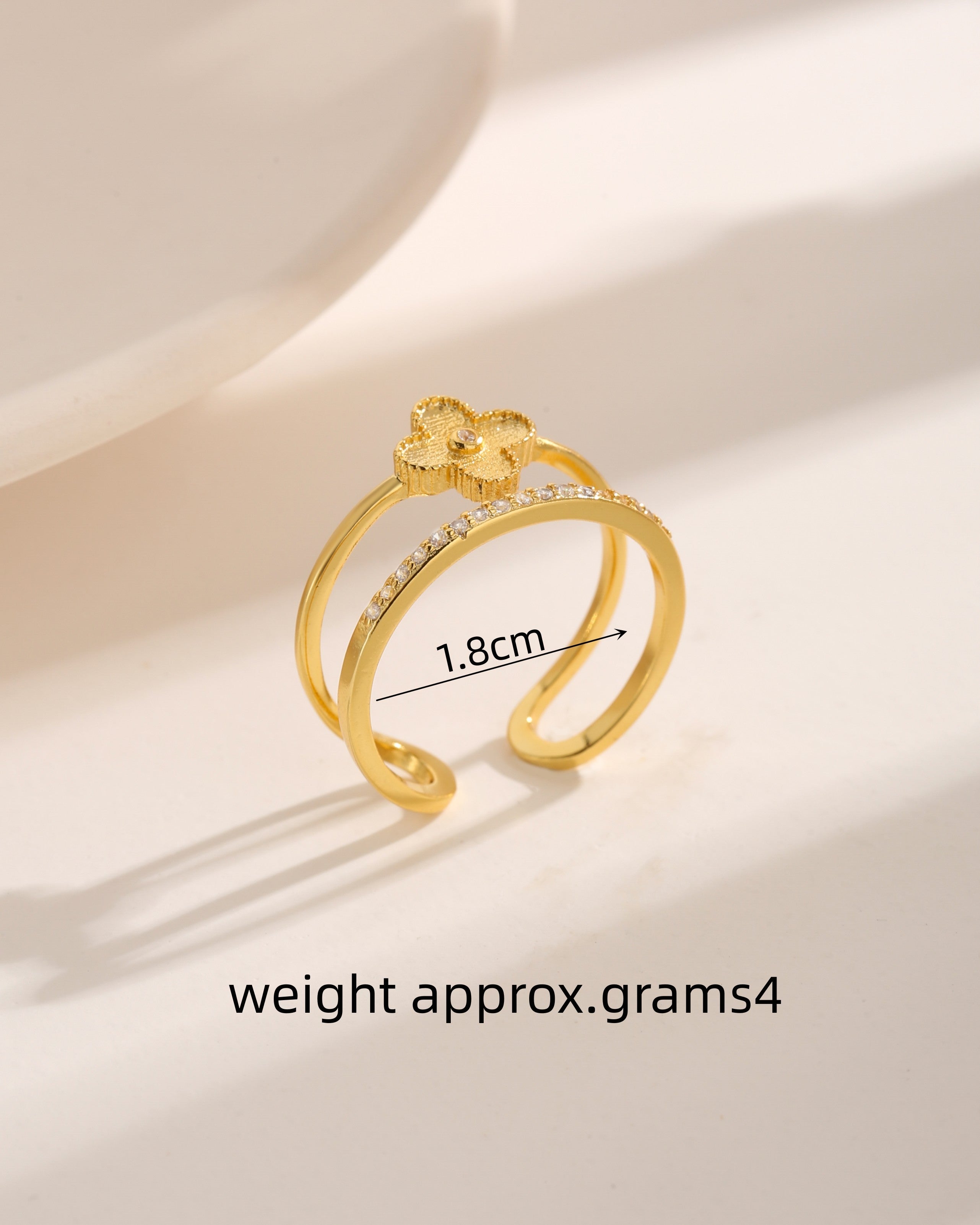 Glamorous Vintage Flower Zircon 18K Gold Plated Open Ring with Double Layer Beaded Edge Design