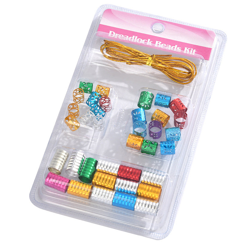 Gold Wire Dreadlocks Hair Extension Rings & Metal Hollow Flower Tubes Set