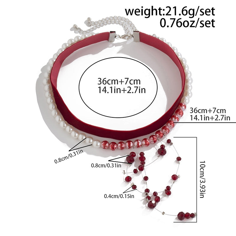Gothic Blood Drip Pearl Crystal Tassel Choker Necklace