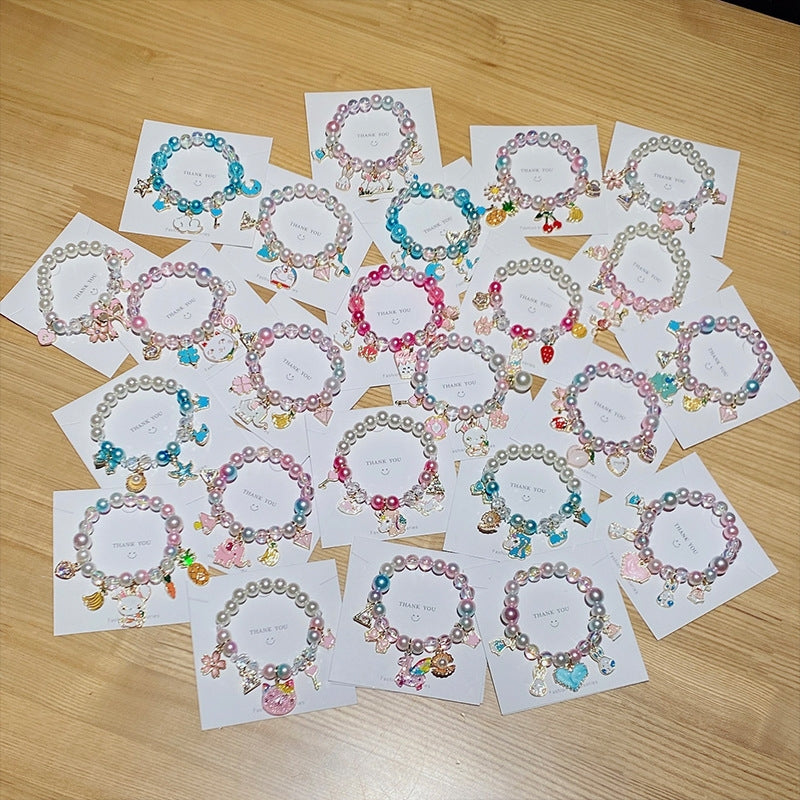 Gradient Color Children's Pearl Cartoon Beaded Bracelet - Kids Hand Accessories