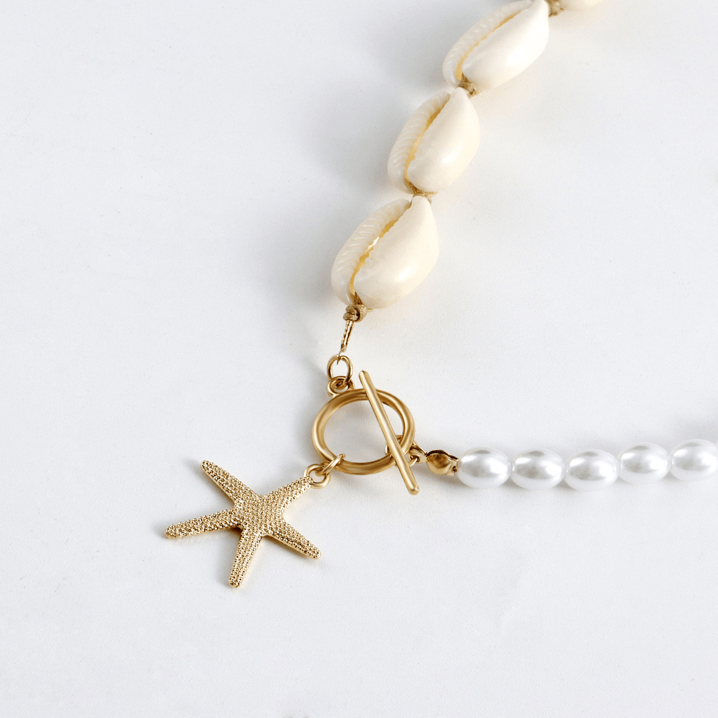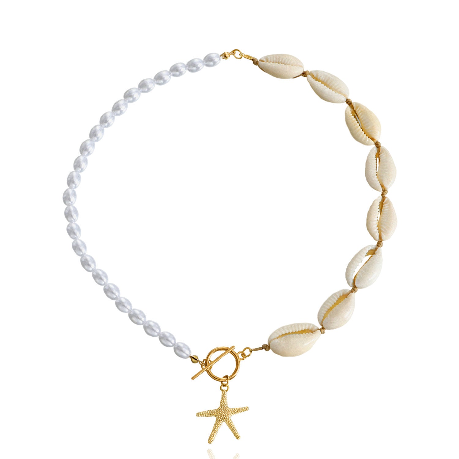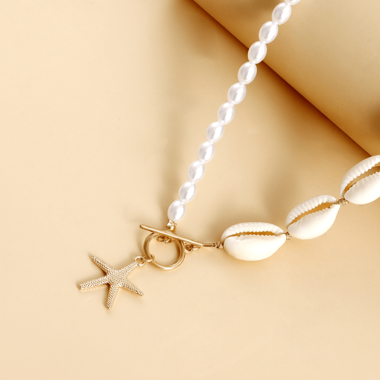Hawaiian Beach Starfish Shell Pearl Pendant Necklace