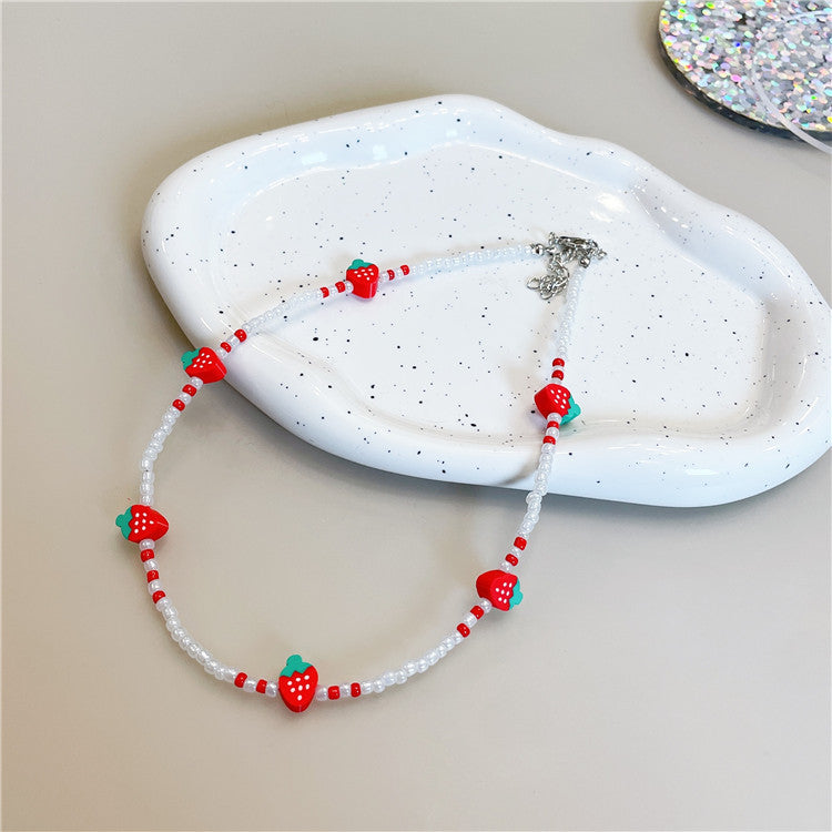 Hawaiian Sweet Fruit Beaded Resin Strawberry Necklace - Unique Layered Design