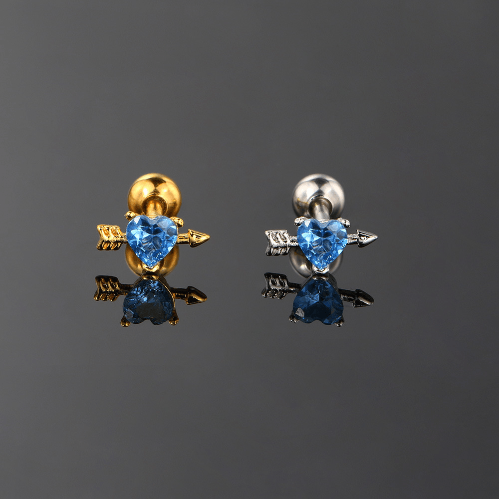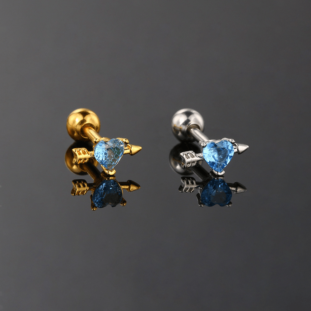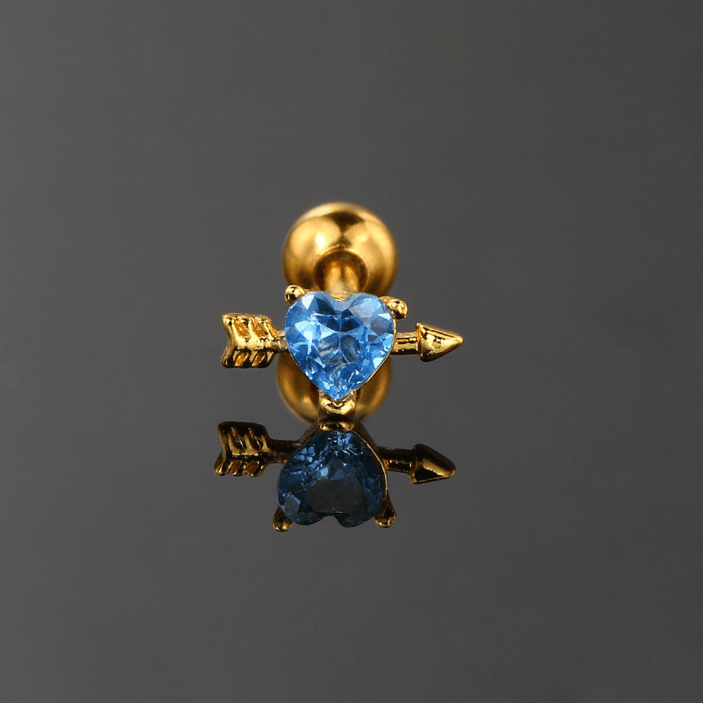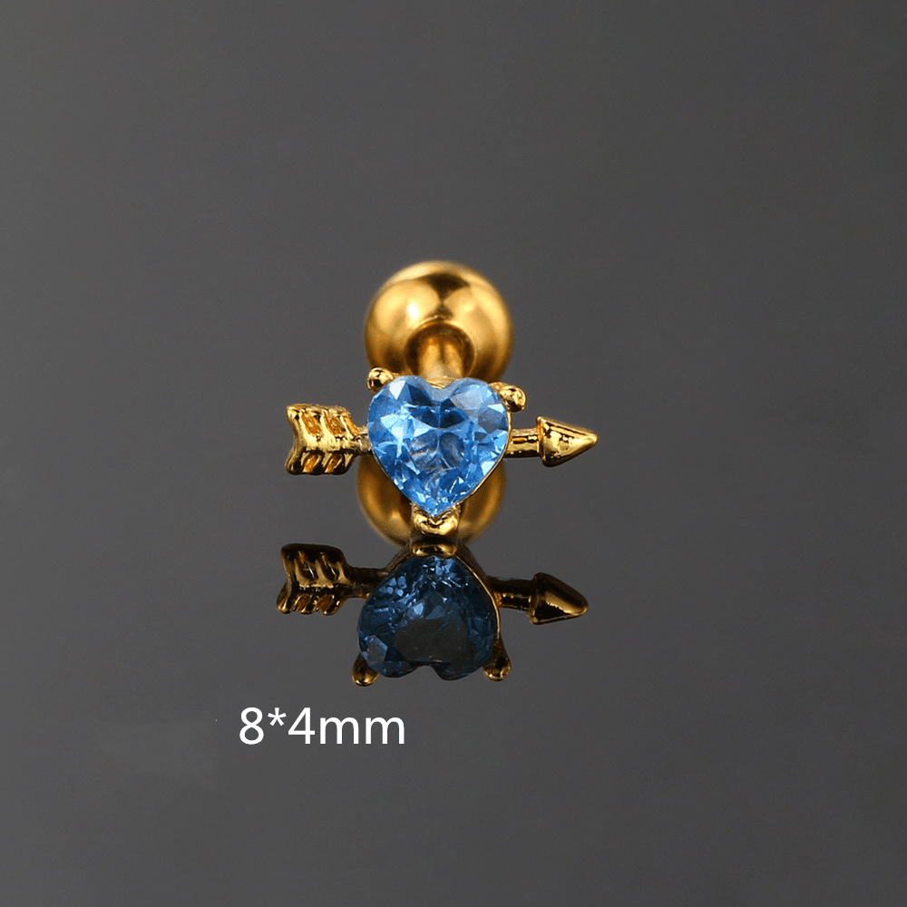 Heart & Flower Inlay Rhinestone Cartilage Earrings - Gold & Blue Stone Twist Design