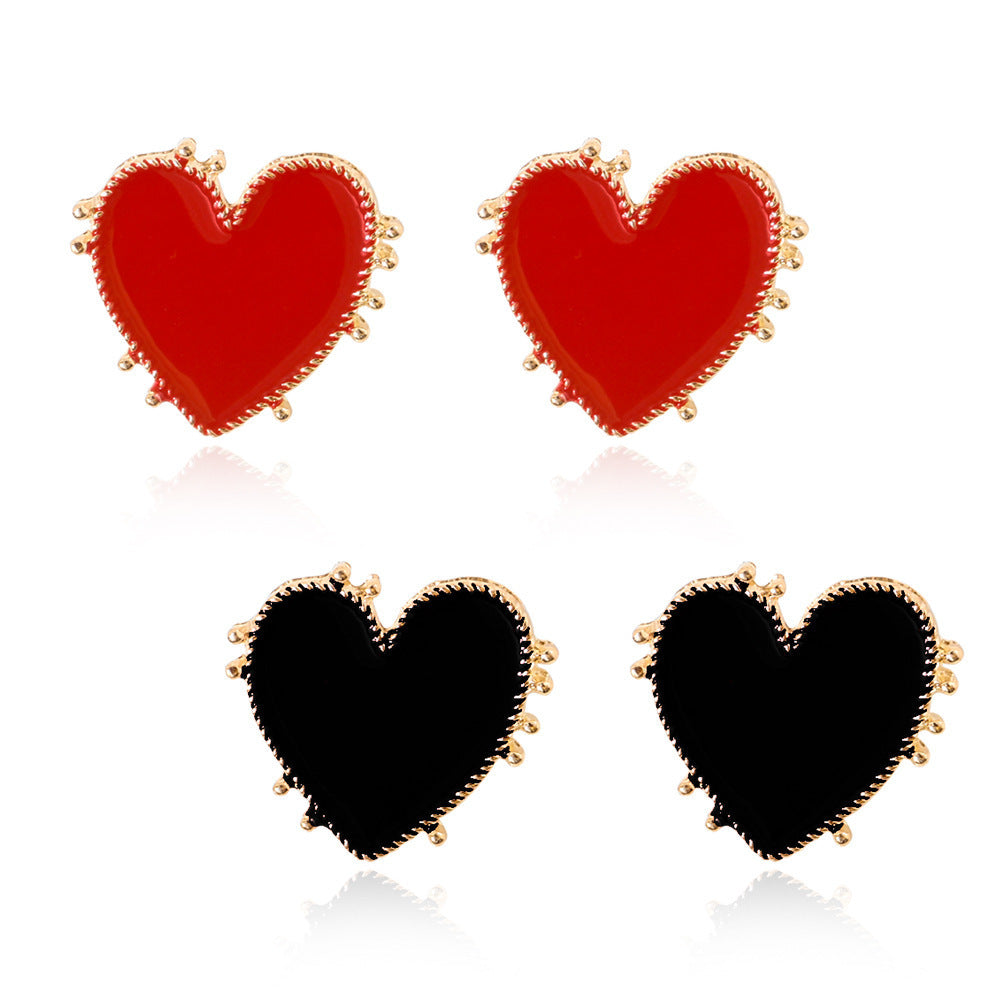 Heart Shape Alloy Enamel Earrings - Black and Red Drip Oil Design