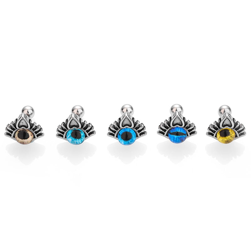 Heart Shape Eye 316L Stainless Steel Cartilage Earrings with Rhinestone Inlay