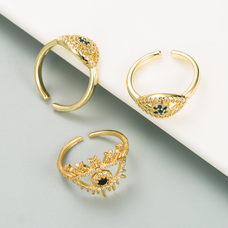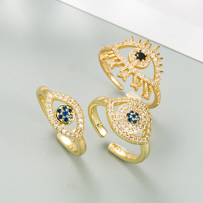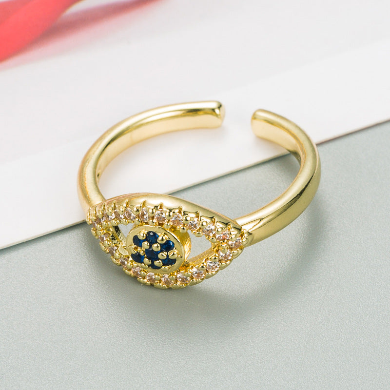 Hip-hop Devil's Eye Adjustable Copper Zircon Ring
