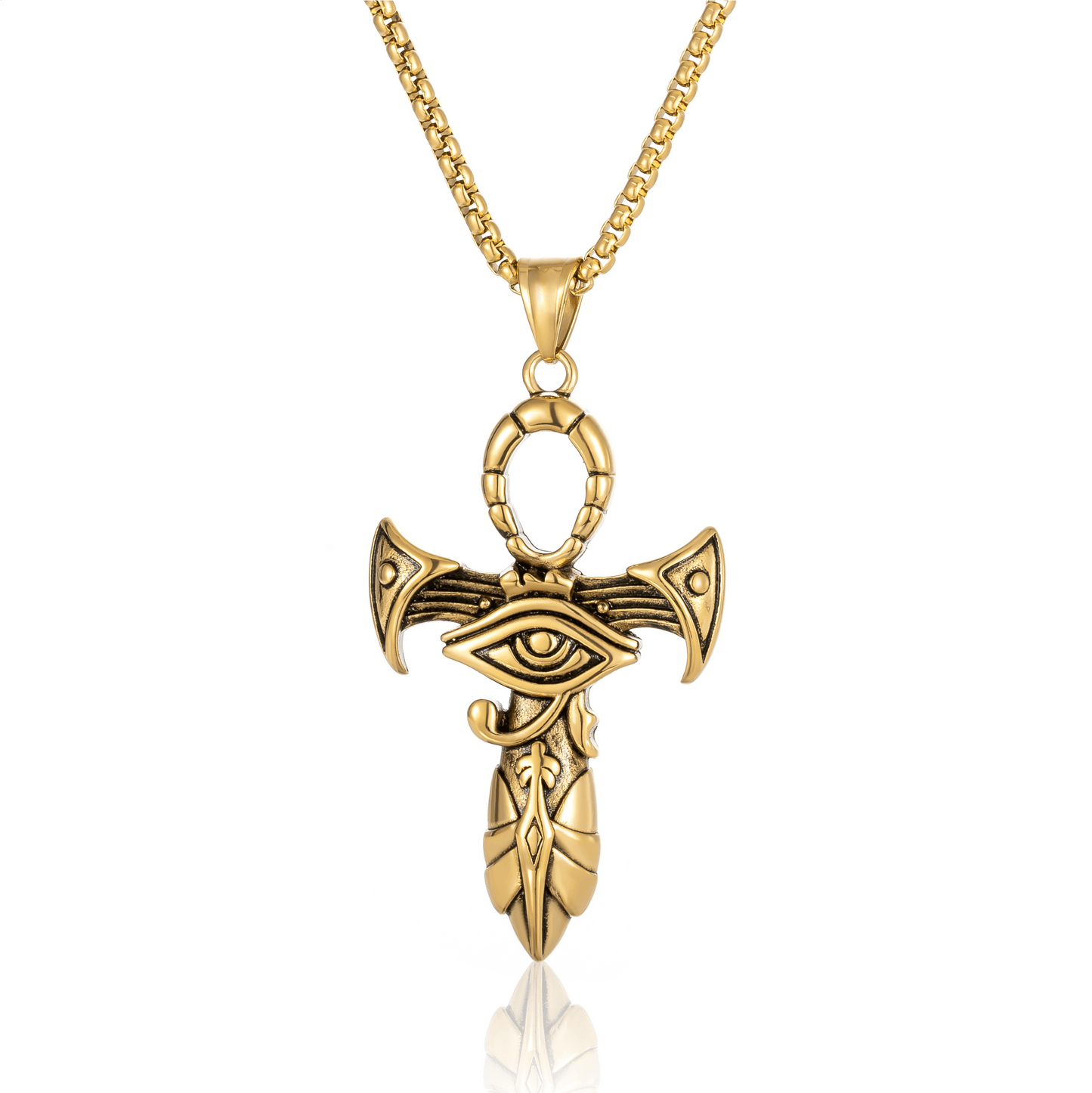 Hip-Hop Retro Horus Eye Ankh Cross Sword Pendant Necklace for Men
