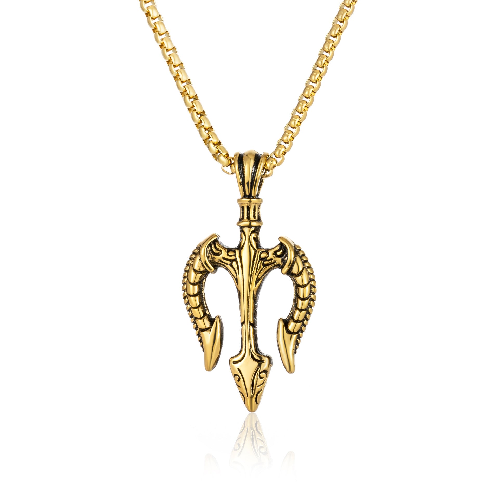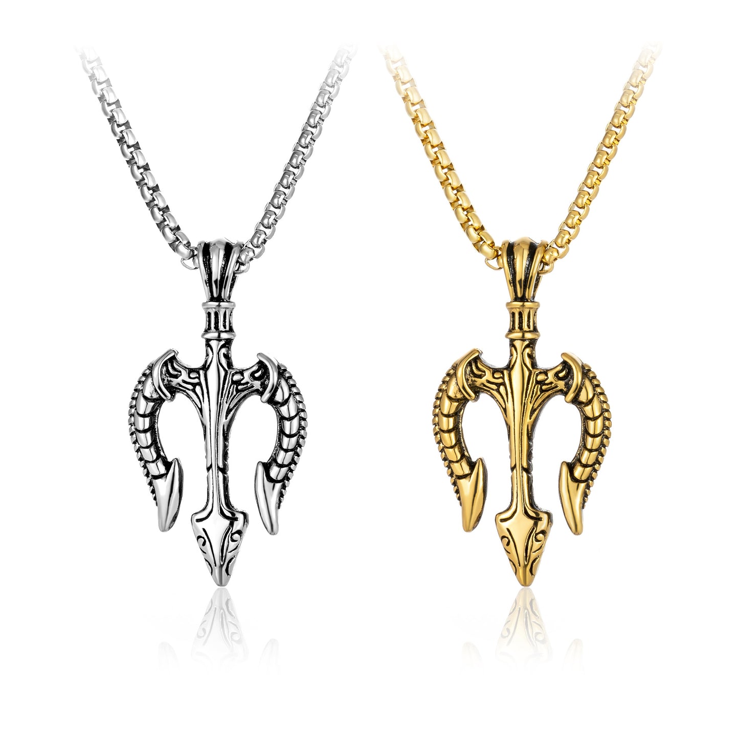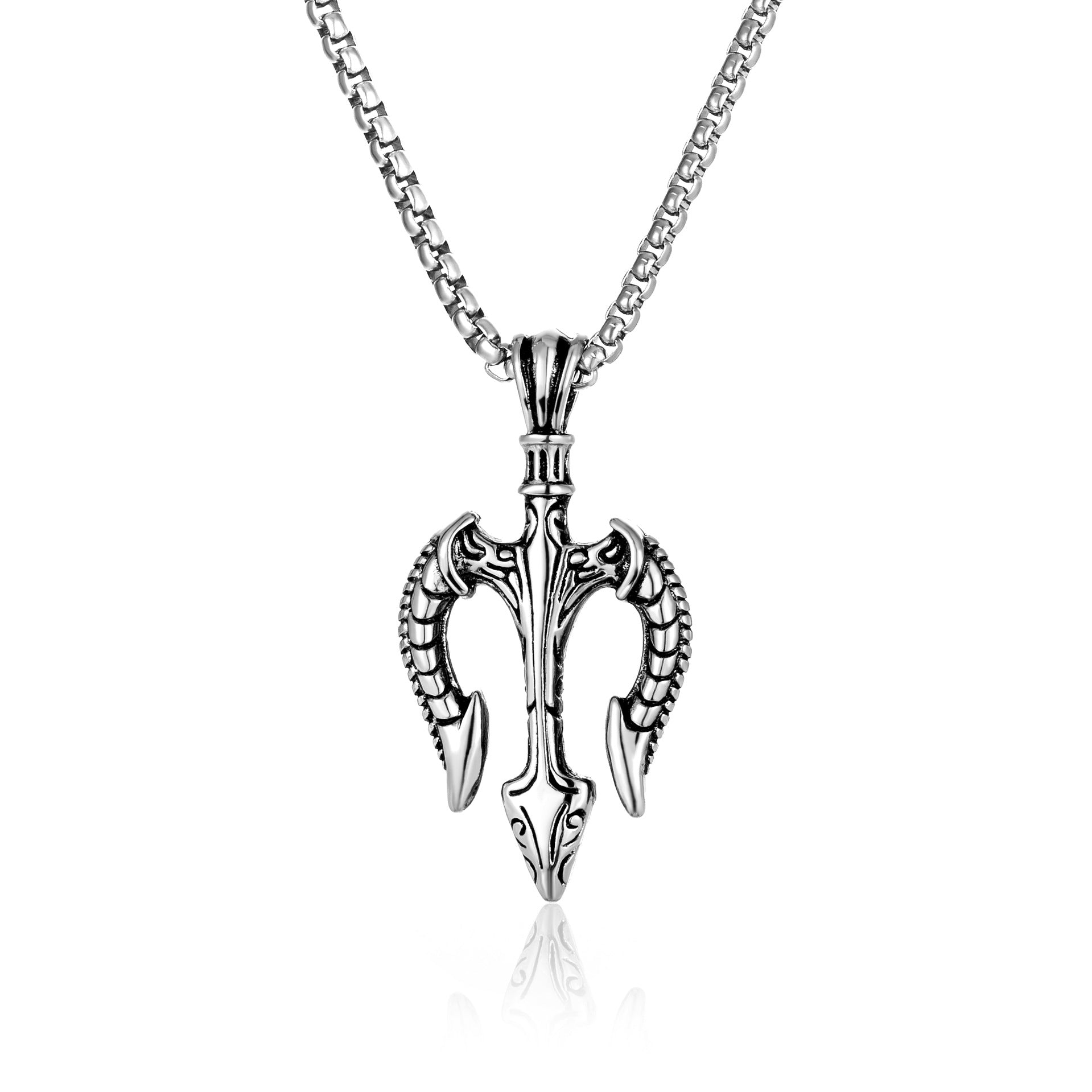 Hip-Hop Retro Trident Engraved Stainless Steel Men's Pendant Necklace