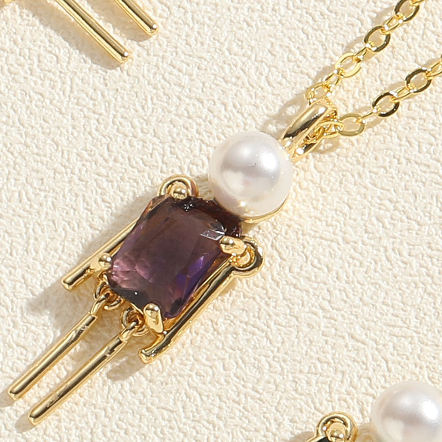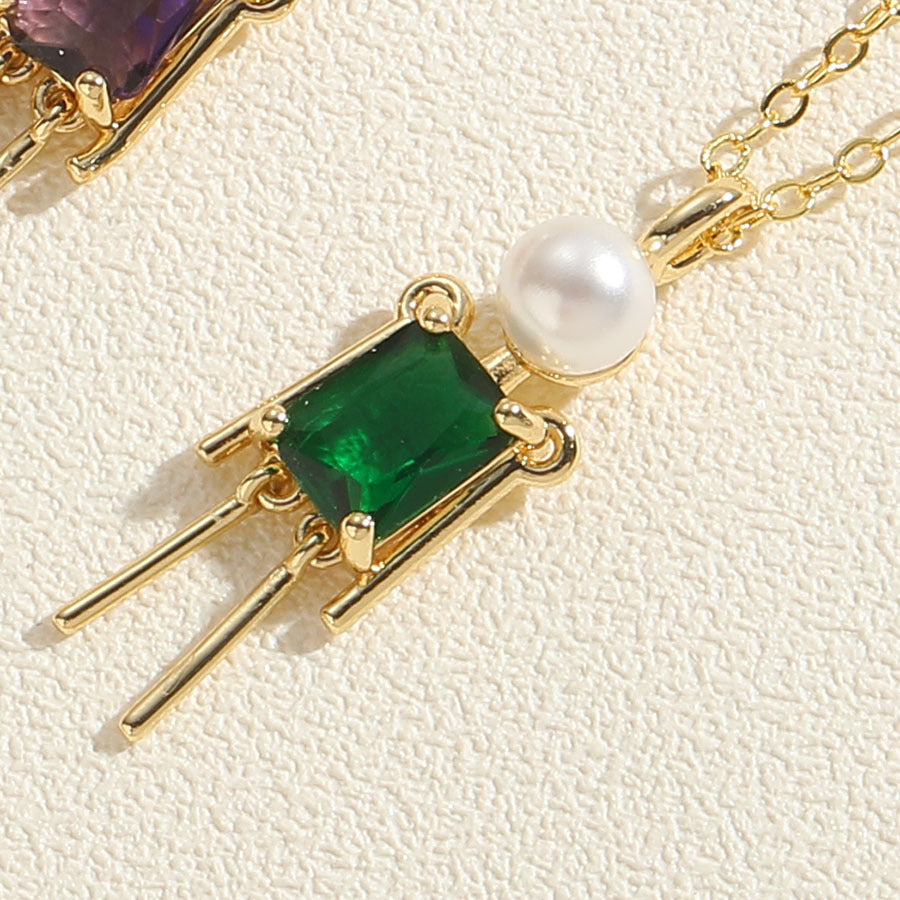 Hip-hop Little Boy Zircon Pearl Pendant Necklace 14k Gold Plated