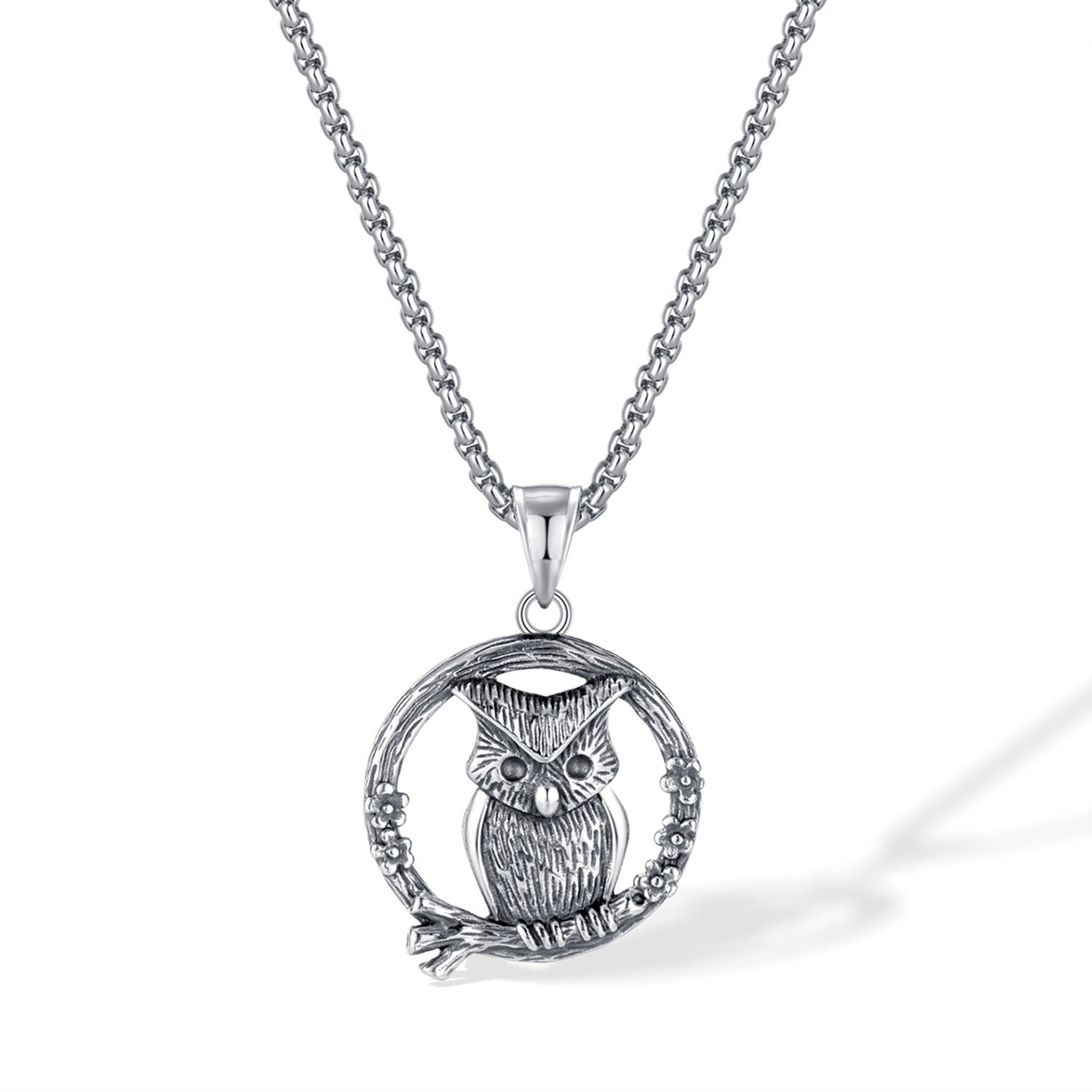 Hip-Hop Vintage Owl Stainless Steel Men's Pendant Necklace