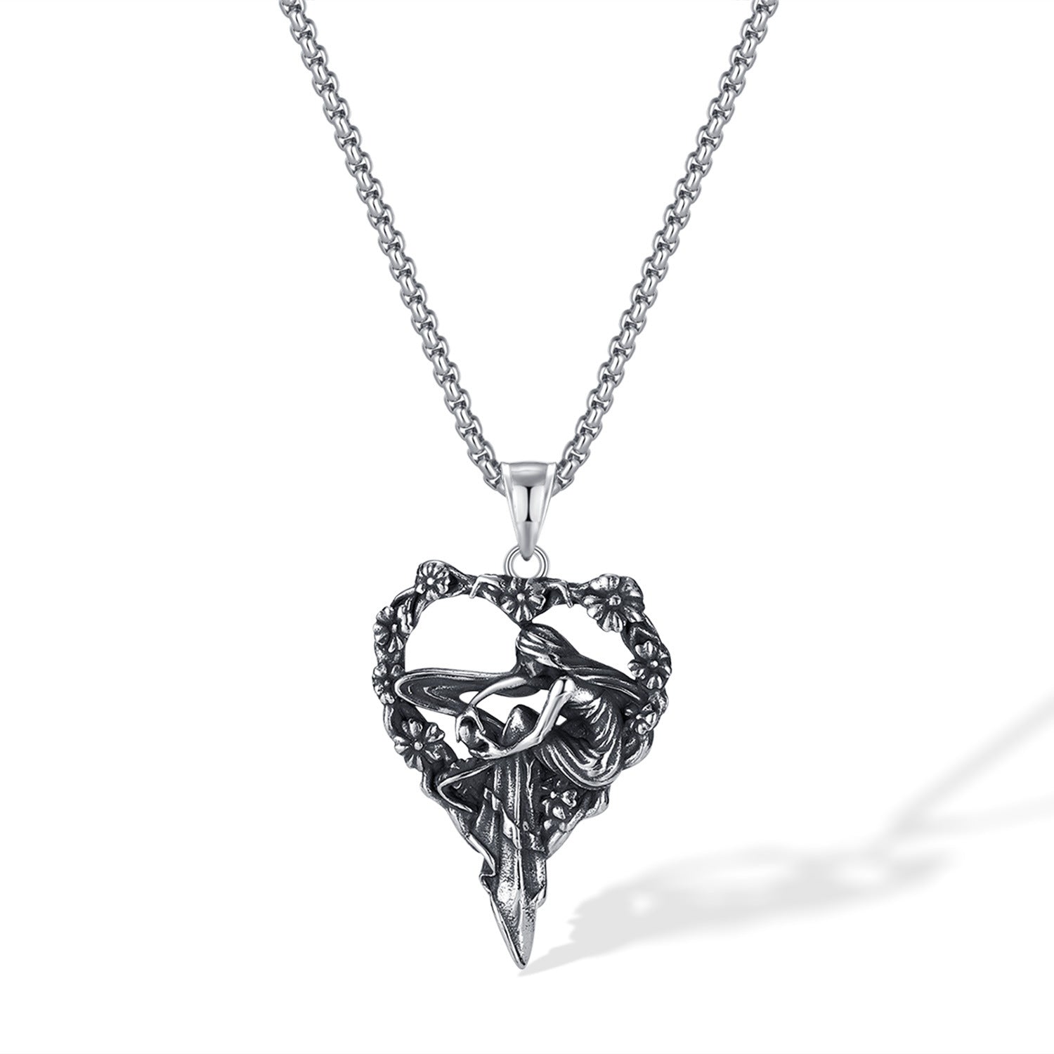 Hip-Hop Vintage Human Heart Stainless Steel Pendant Necklace for Men