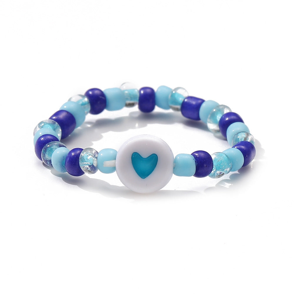 Heart Shape Resin Beaded Women's Ring Set - 3 Pieces