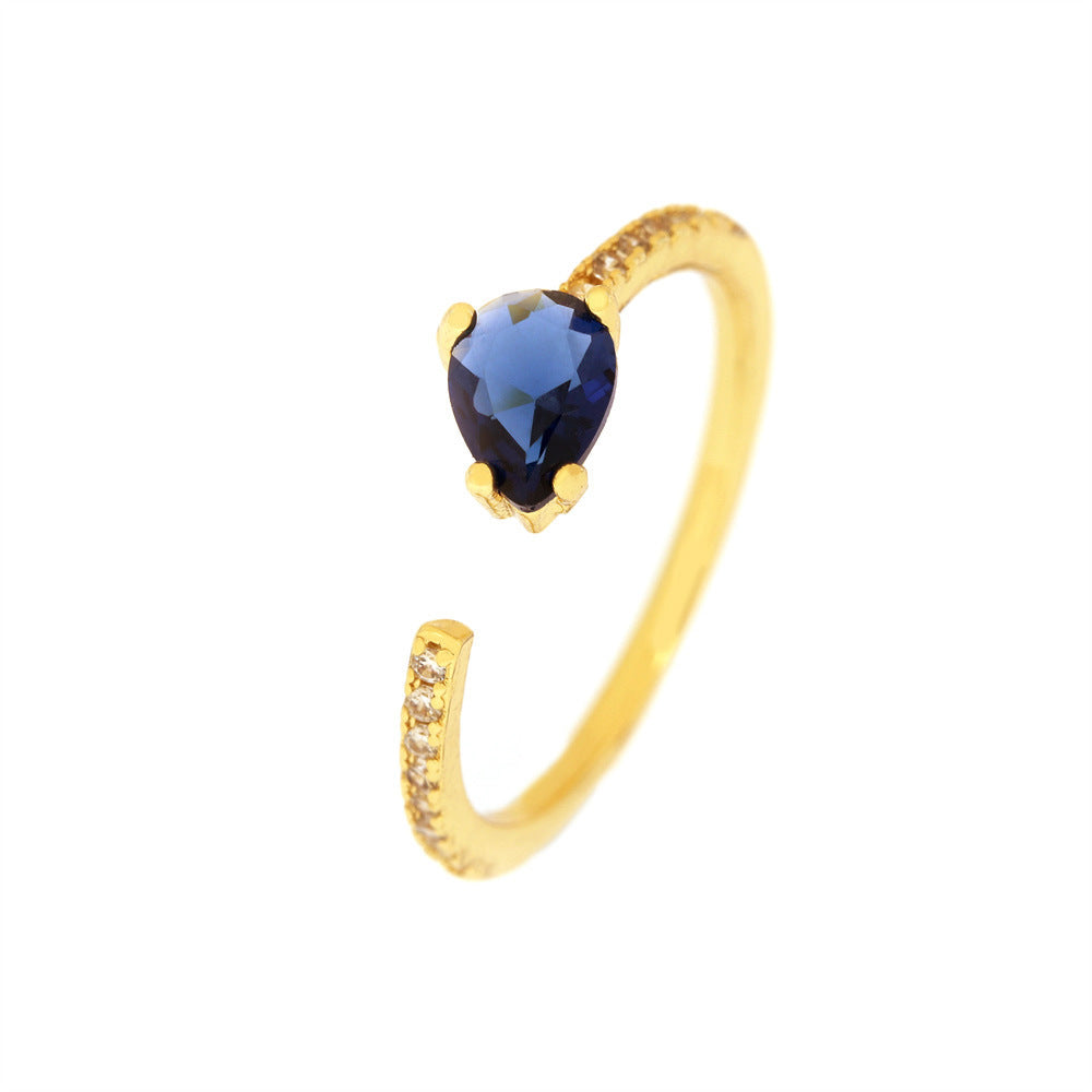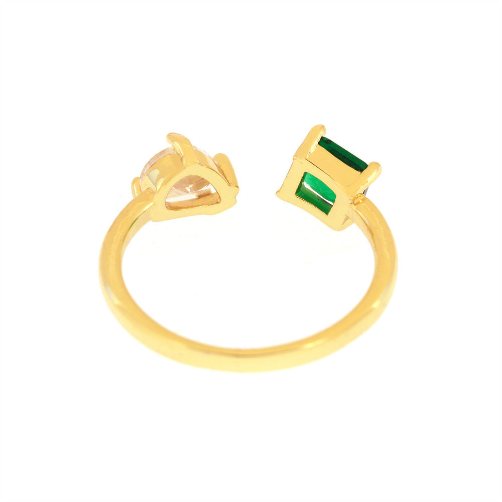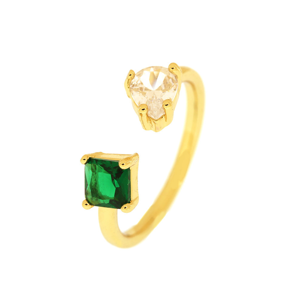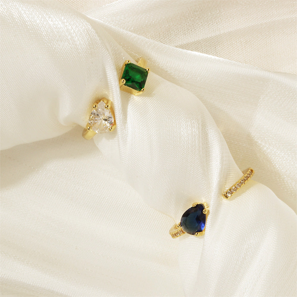 IG Style Korean Square Water Droplet Zircon 18K Gold Plated Adjustable Ring