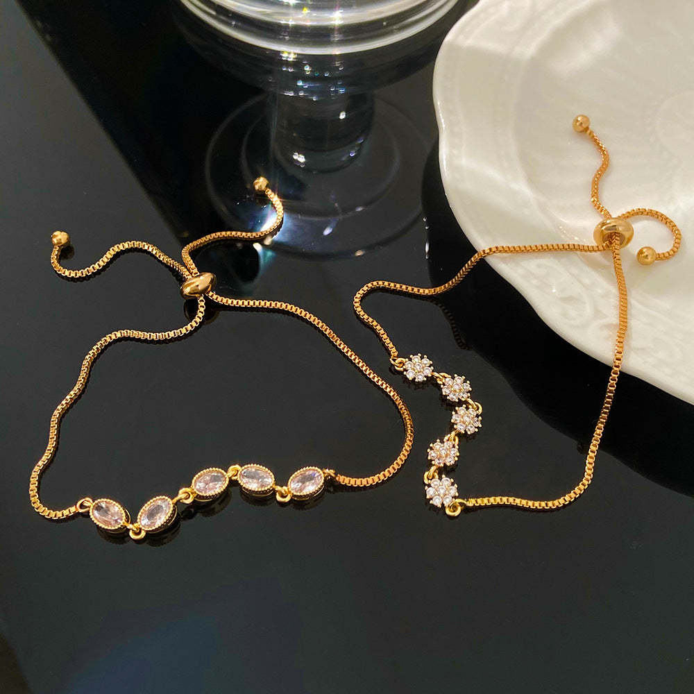 IG Style Sweet Oval Flower & Butterfly Zircon 14K Gold Plated Adjustable Bracelet