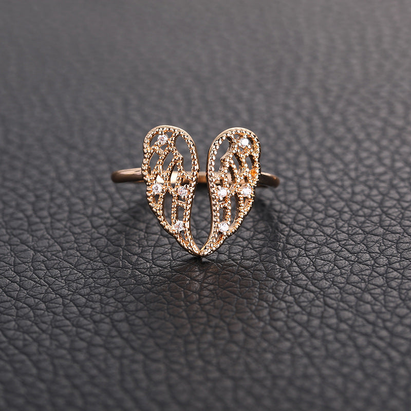 INS Style Angel Wings Zircon Inlay Gold Plated Open Ring