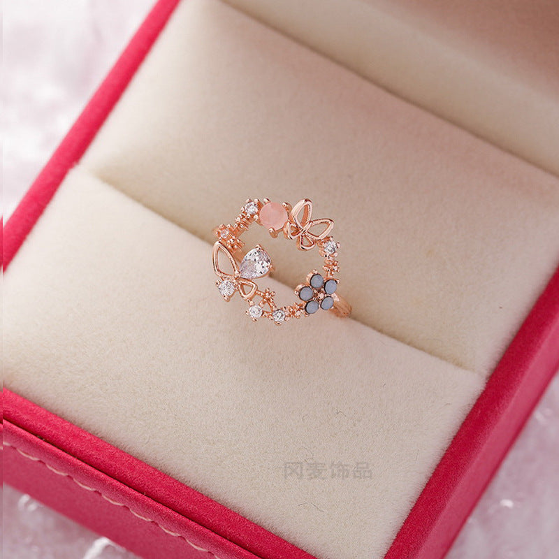 Korean Fashion Crystal Zircon Flower Adjustable Ring