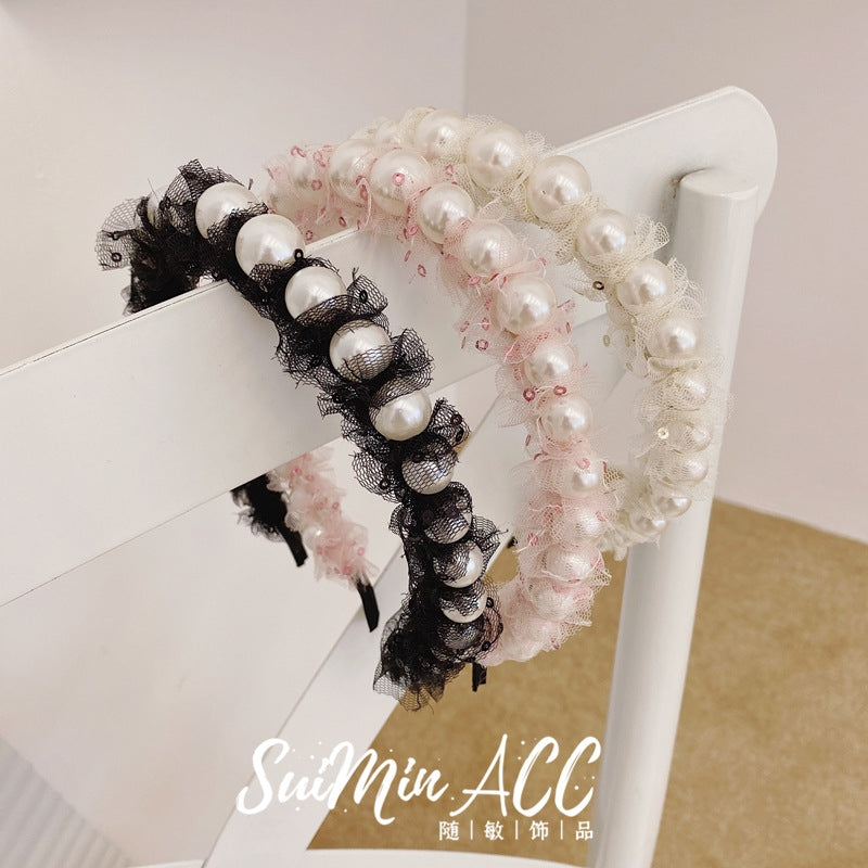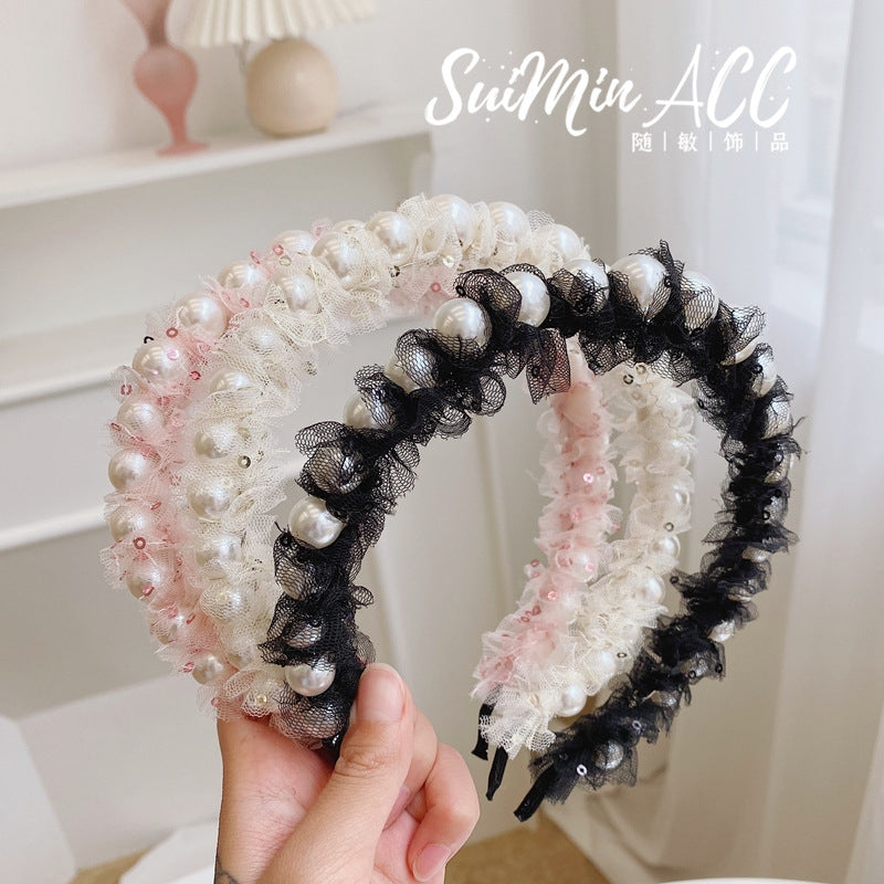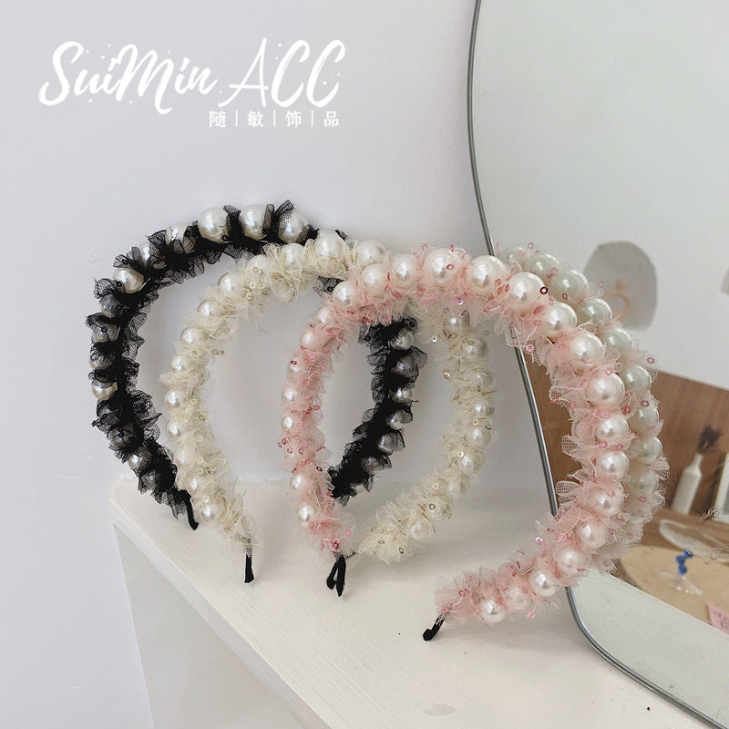 Korean Style Mesh Sequin Pearl Headband Hair Accessory