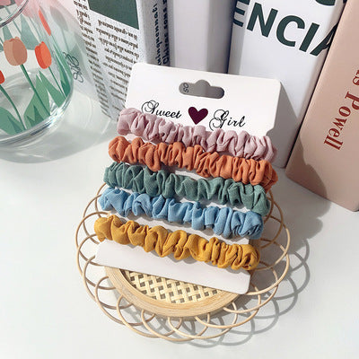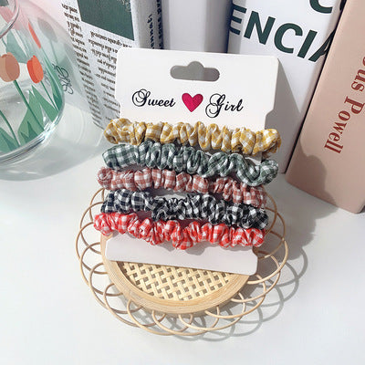 Korean Satin Hair Scrunchies Set - Daisy Print Elastic Hair Bands for Women