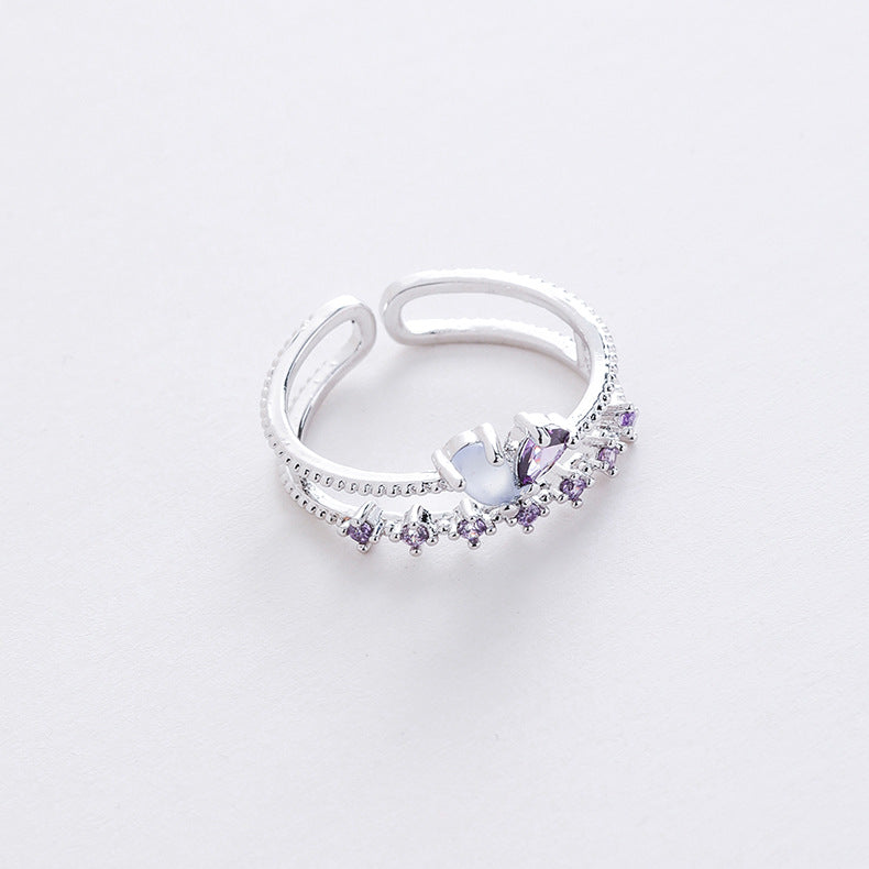 Korean Micro-inlaid Crystal Zircon Flower Ring