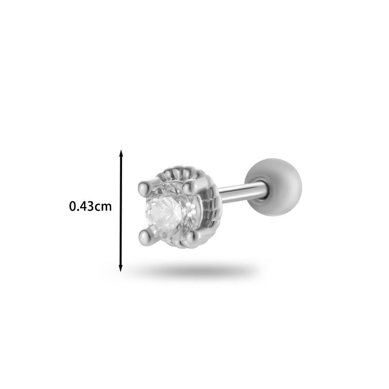 Korean Style Moon Heart Copper Zircon Cartilage Earrings with Titanium Steel Studs