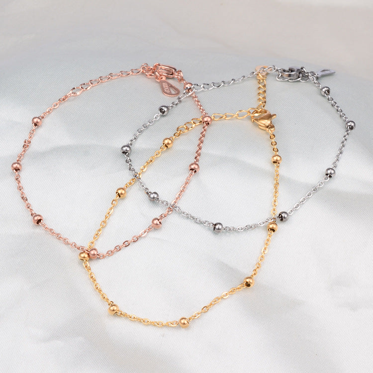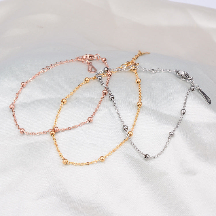 Korean Style Titanium Steel Rose Gold Bead Bracelet Anklet Jewelry