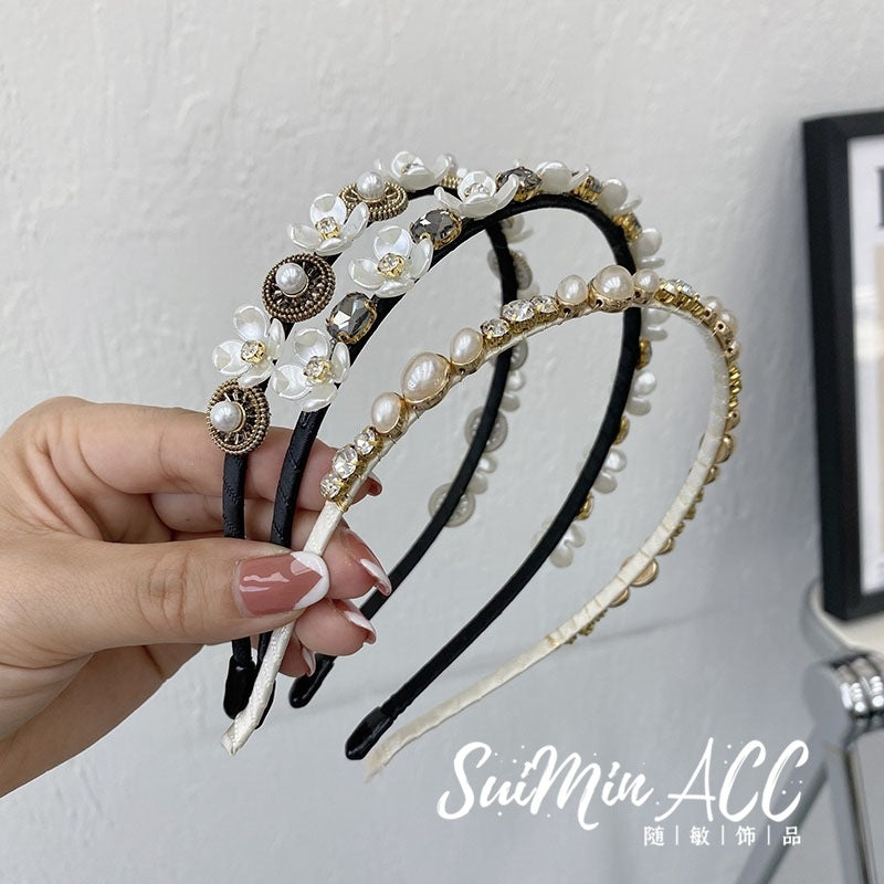 Korean Pearl Flower Rhinestone Headband