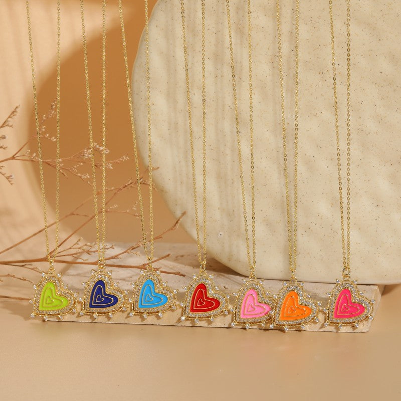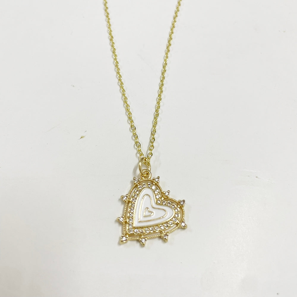 Classic Heart Shape 14k Gold Plated Enamel Pendant Necklace