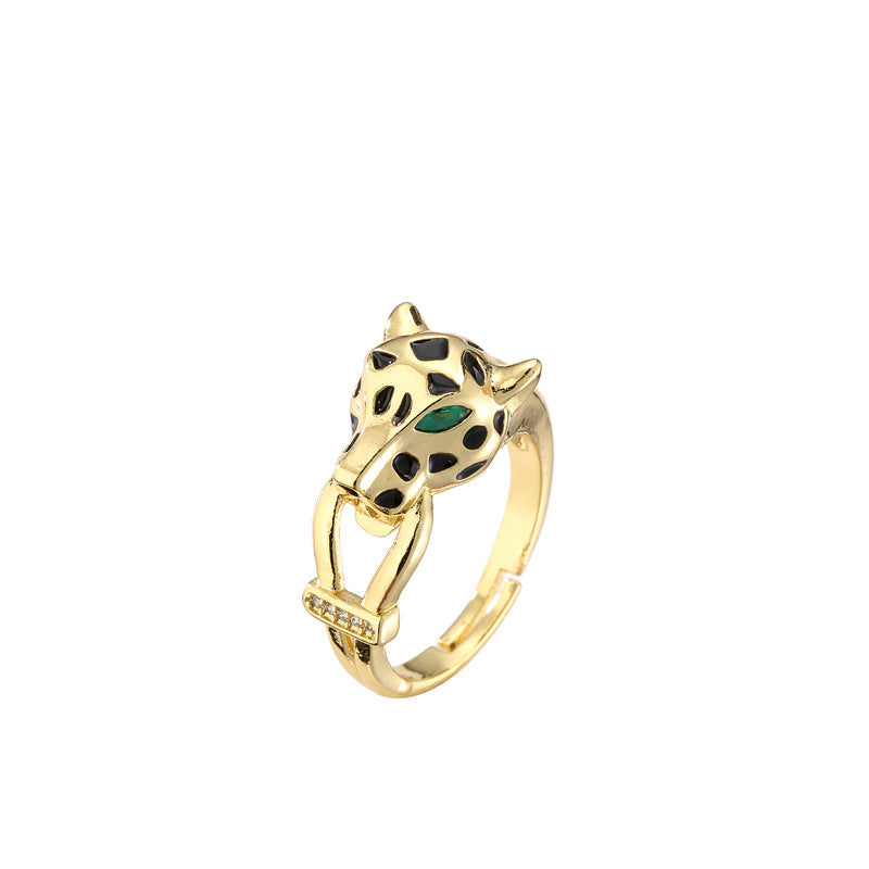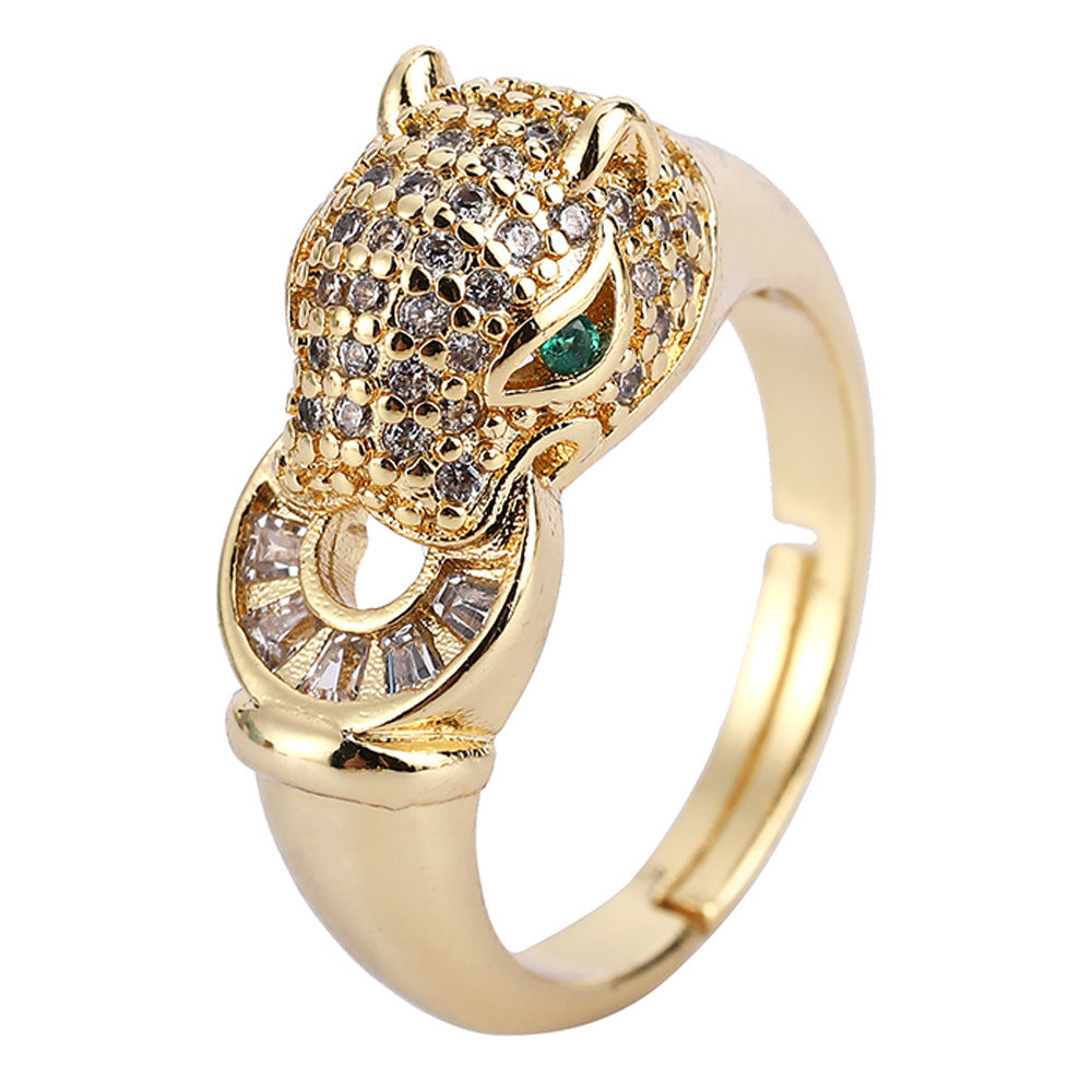 Geometric Gold Plated Copper Zircon Lion Head Ring