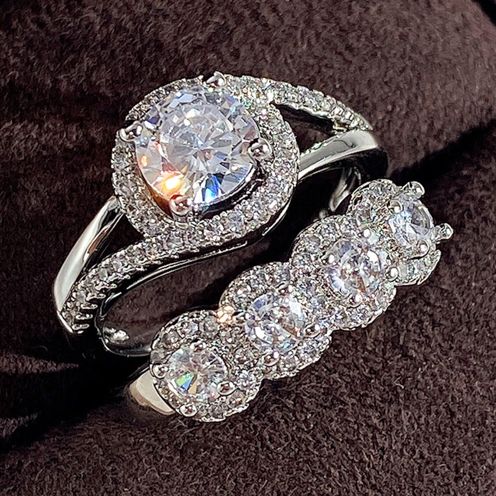 Geometric Zircon Inlay Copper Rings for Women - Minimalist Engagement and Party Set