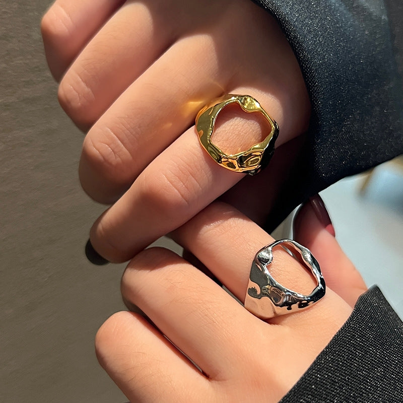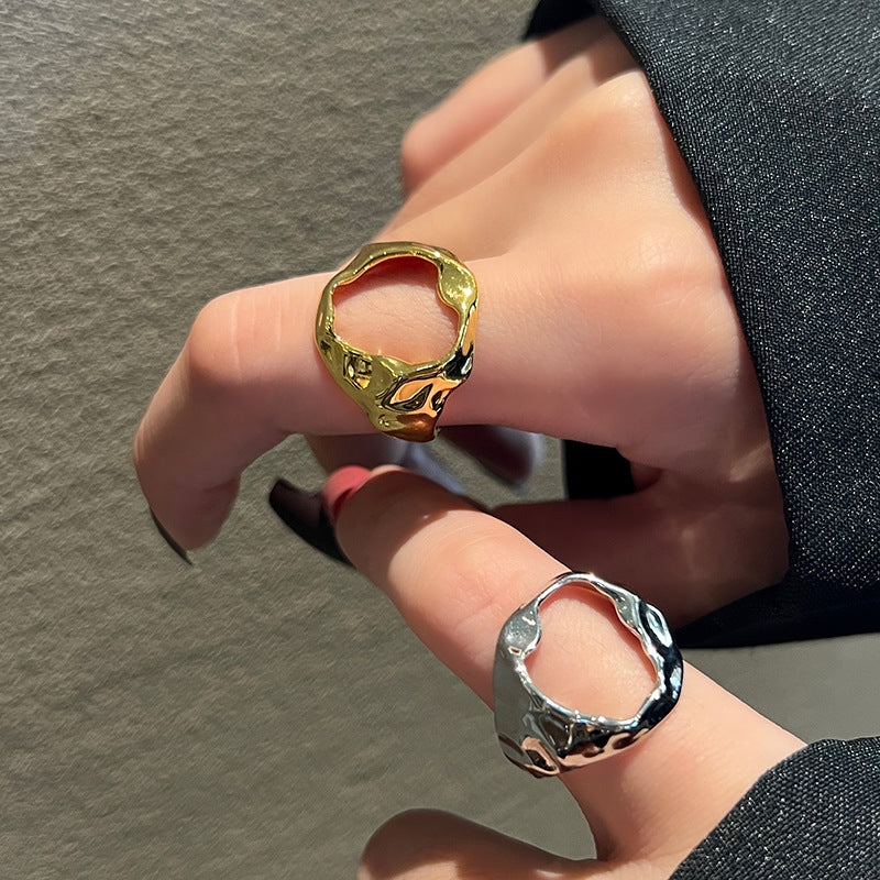 Geometric Silver and Gold Tone Openwork Metal Rings for Women