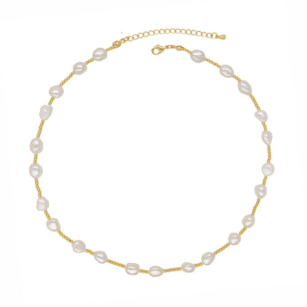 Freshwater Pearl Copper Beaded Necklace with 18k Gold Plating