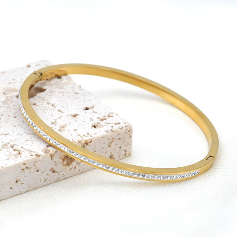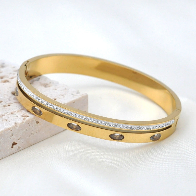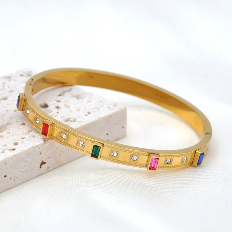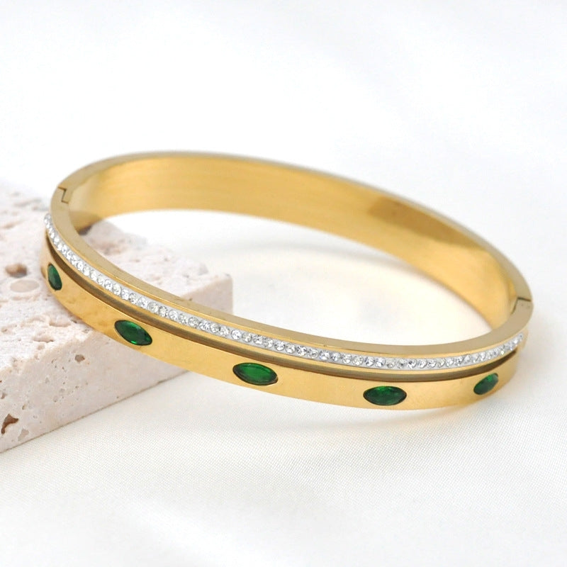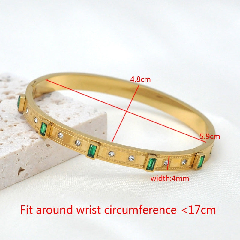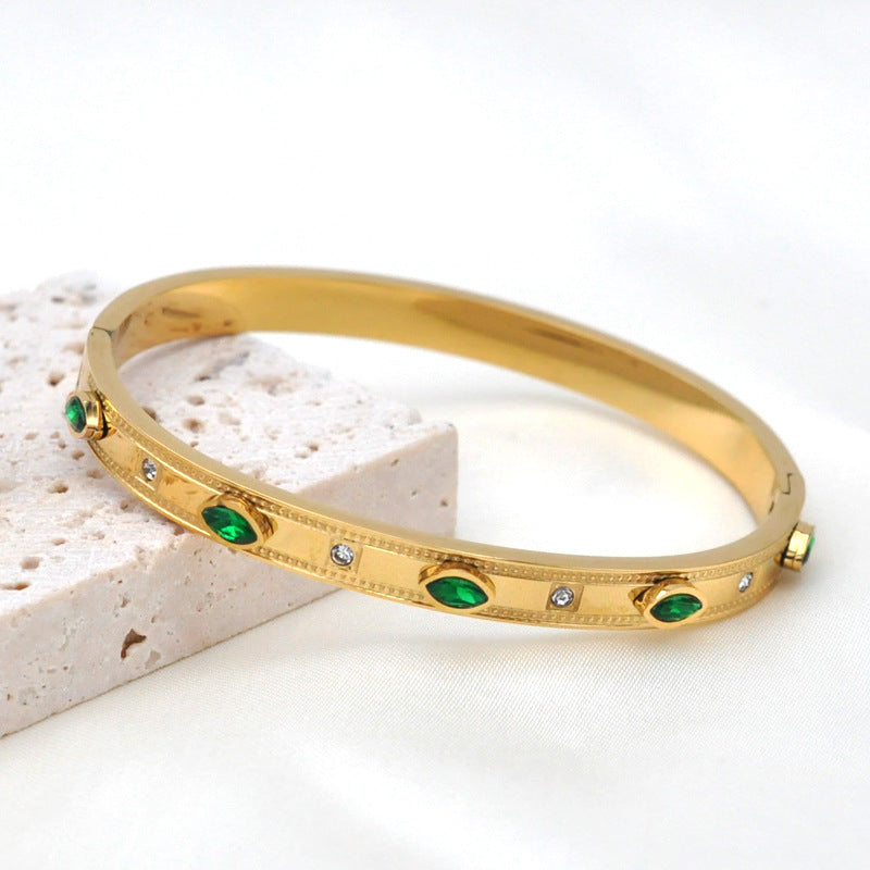 Ladies Stainless Steel Gemstone Bangle with Hexagram Design