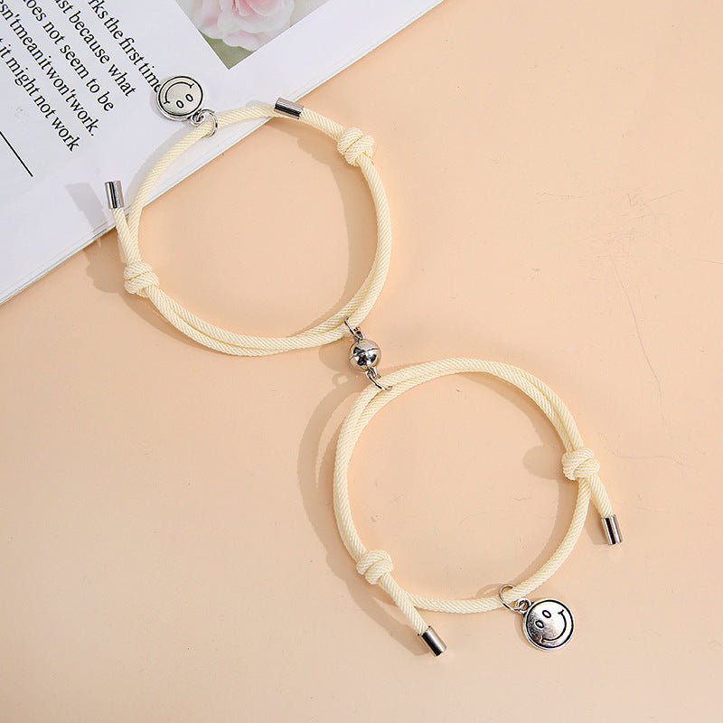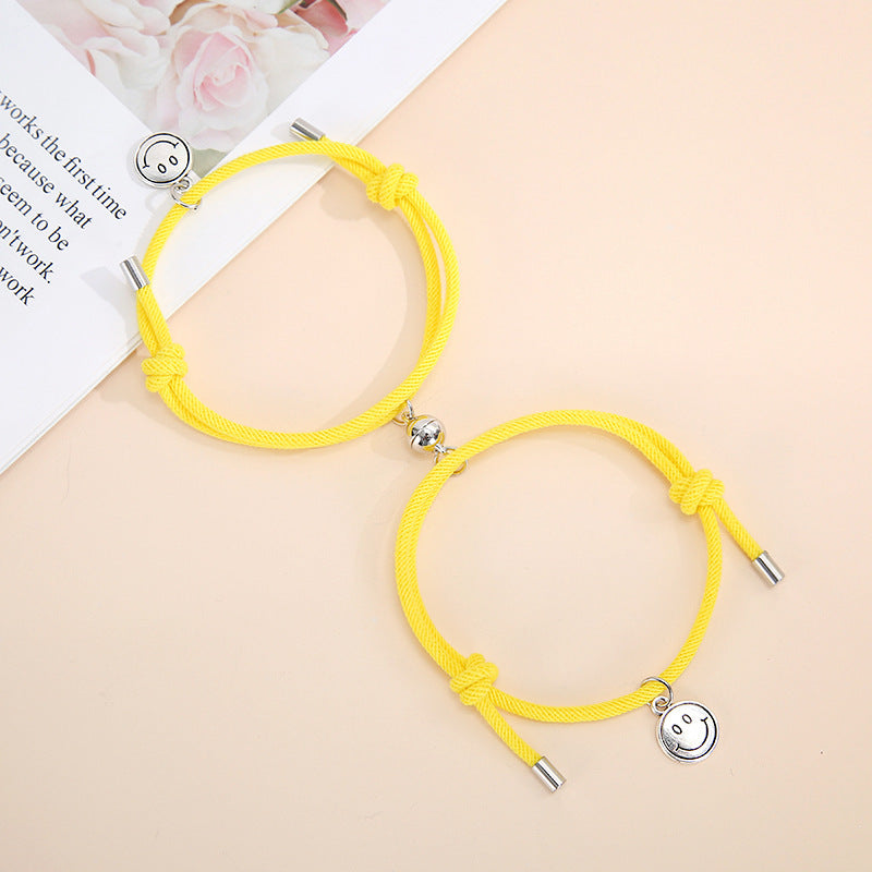 Magnetic Smiley Face Couple Bracelet Set - Handmade Woven Jewelry