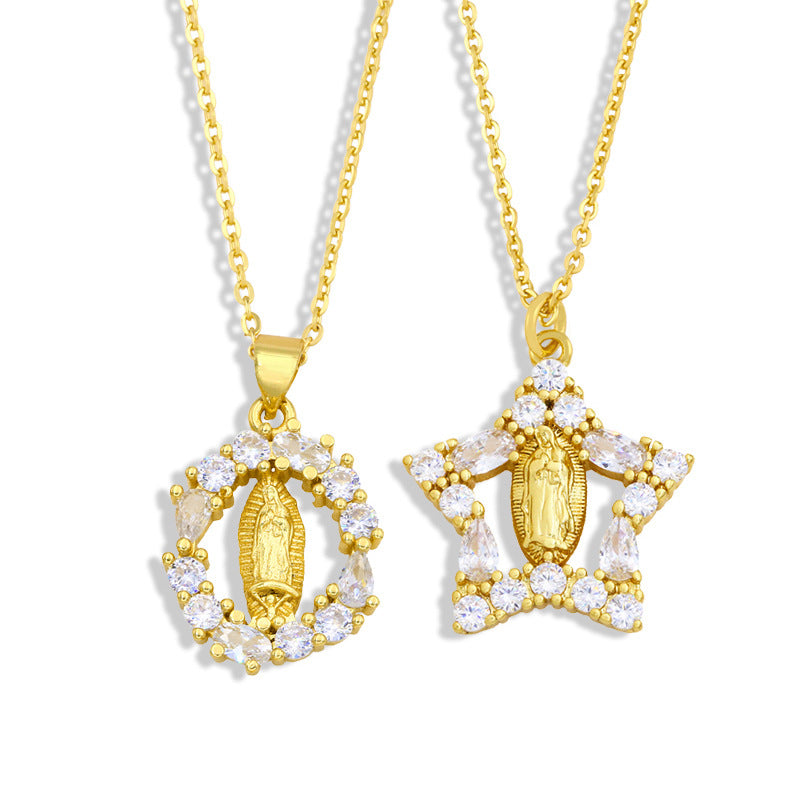 Micro-inlaid Zircon Virgin Mary Heart Pendant Copper Necklace