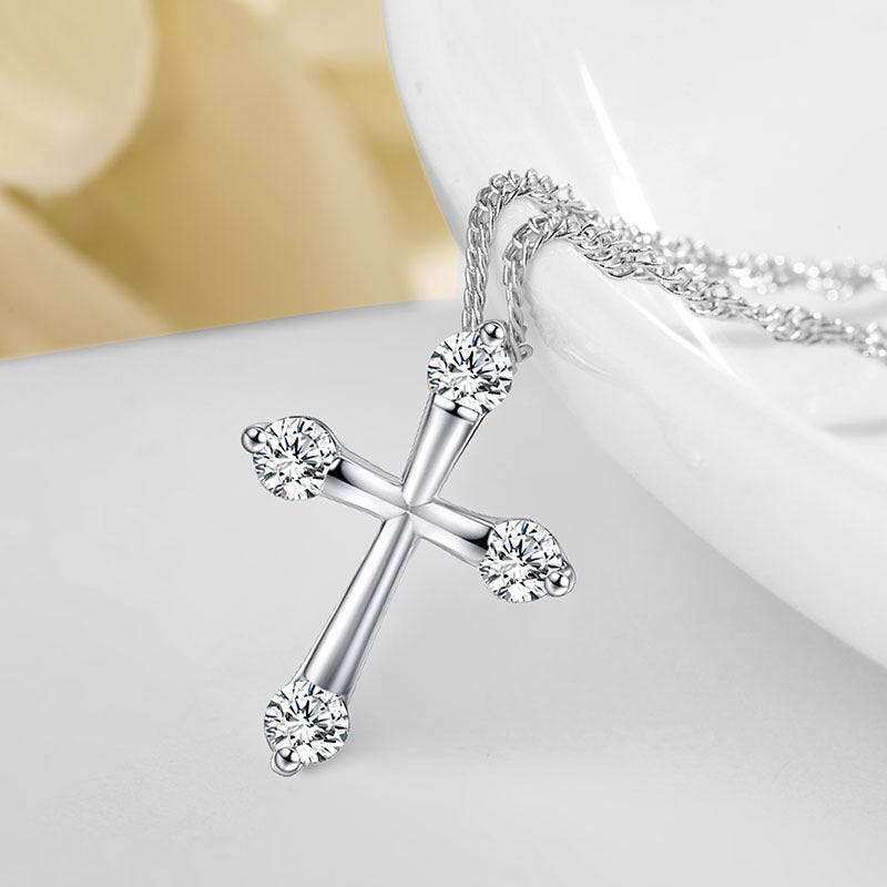 Minimalist Zircon Cross Pendant Necklace for Couples