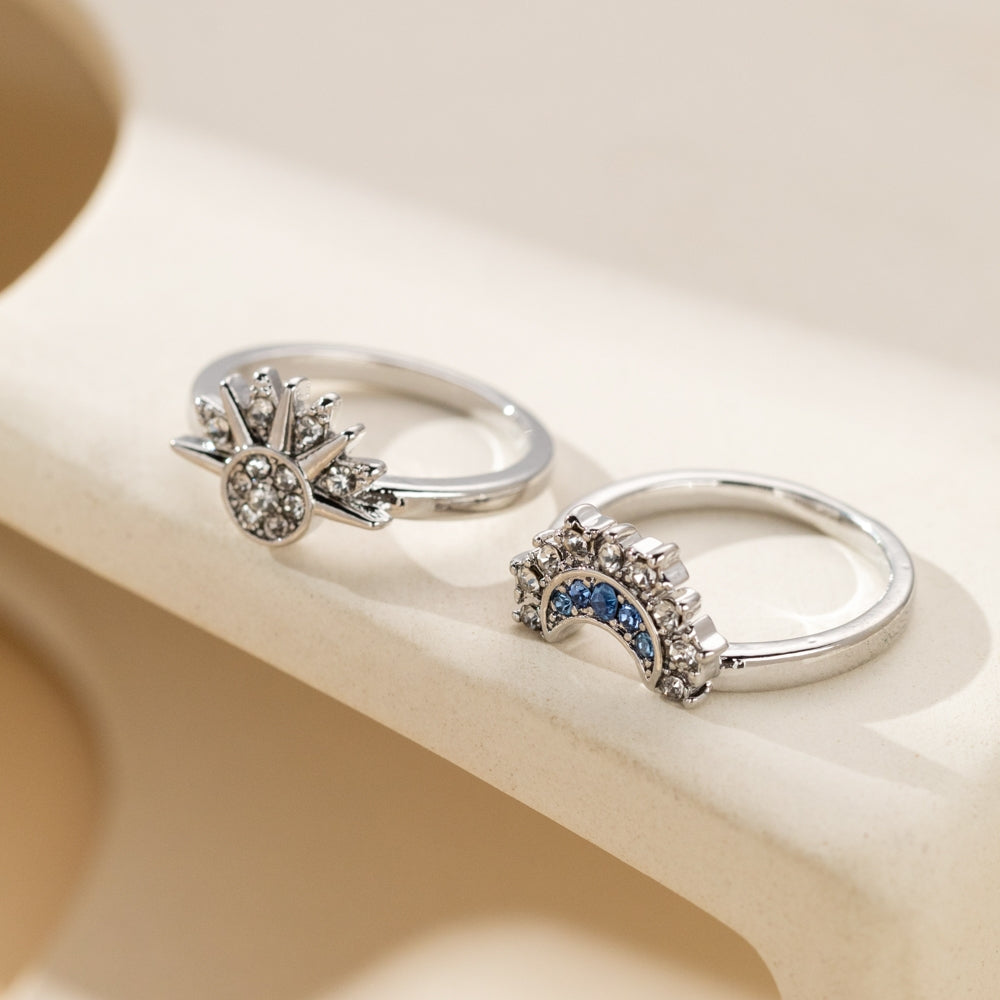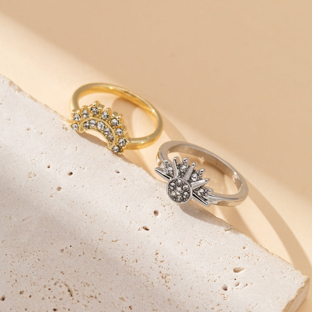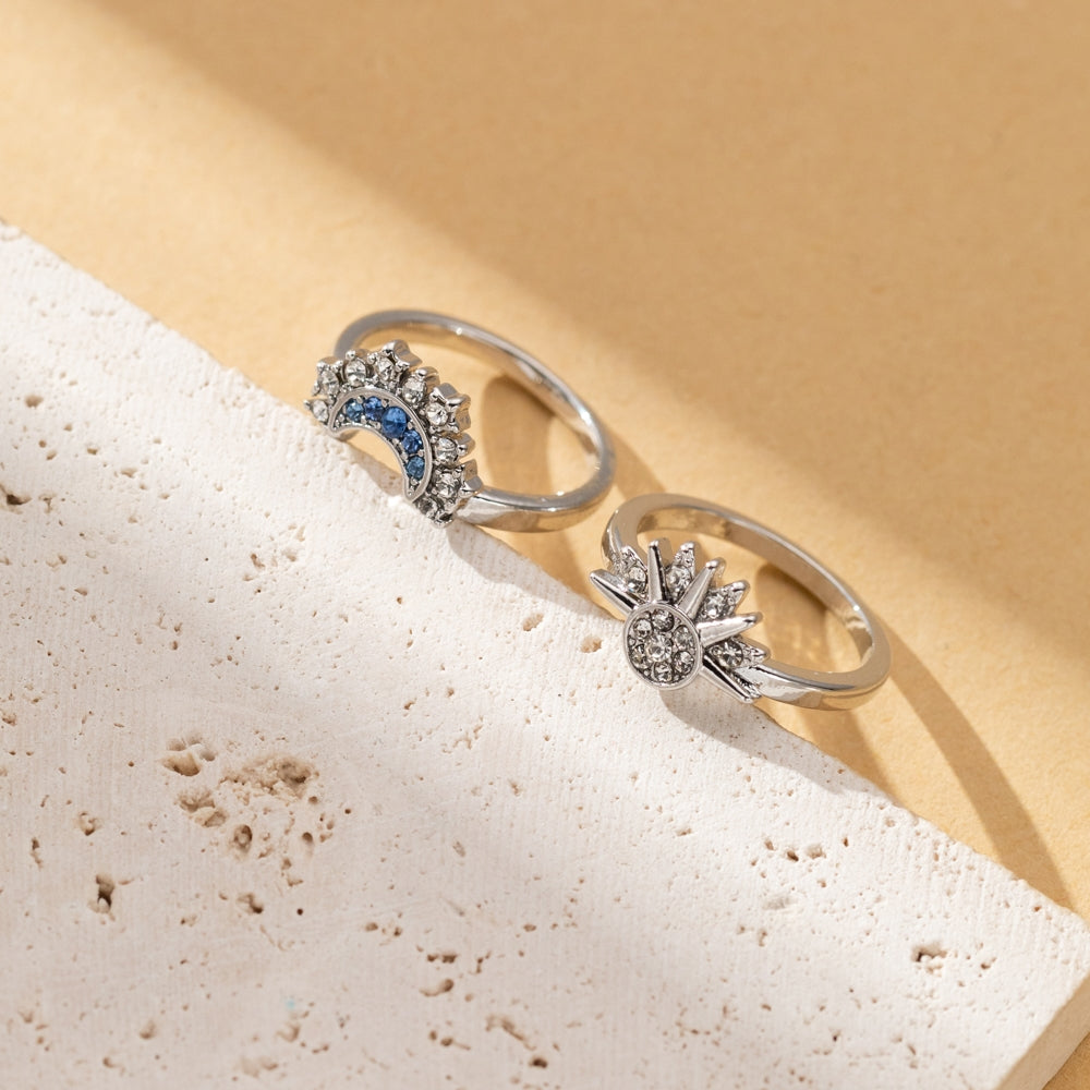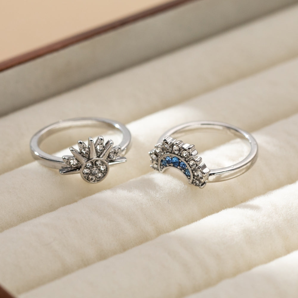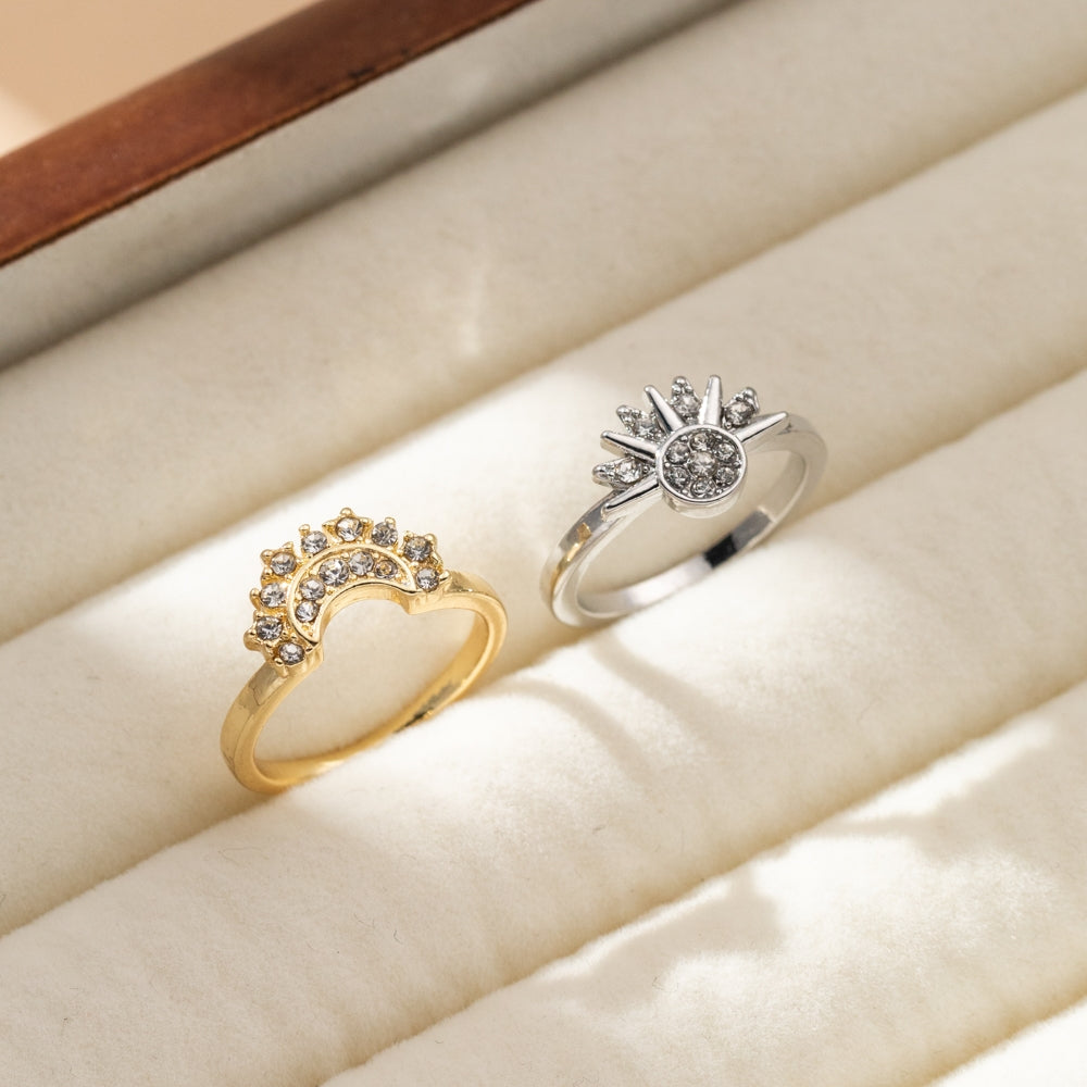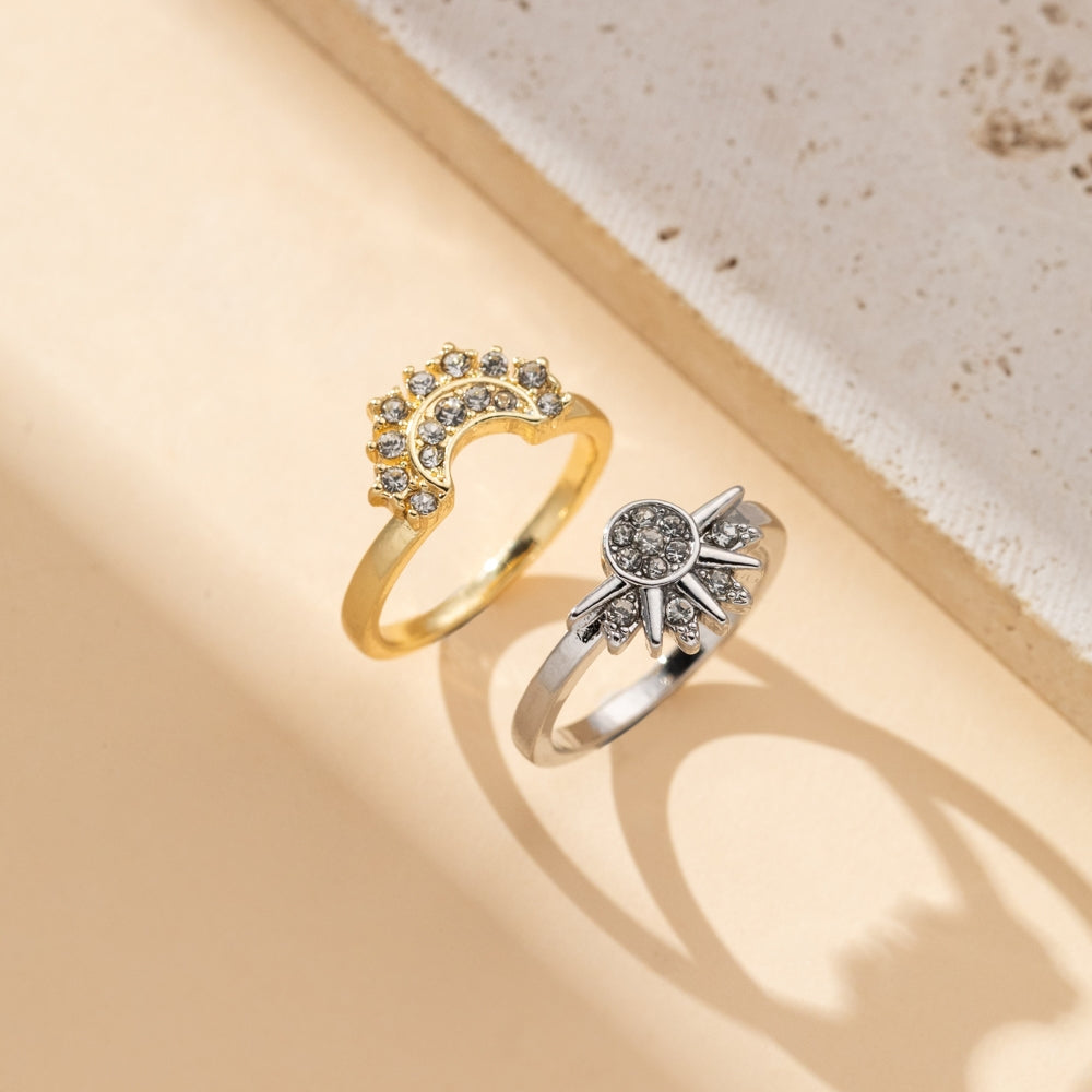 Modern Asymmetrical Sun Moon Rhinestone Couple Rings Set