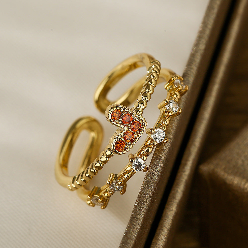 Modern Sweetheart Geometric Zircon 18K Gold Plated Open Ring