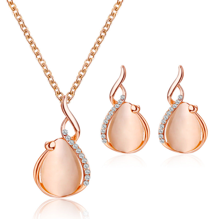 Crystal Opal Water Drop Necklace and Earrings Set for Women