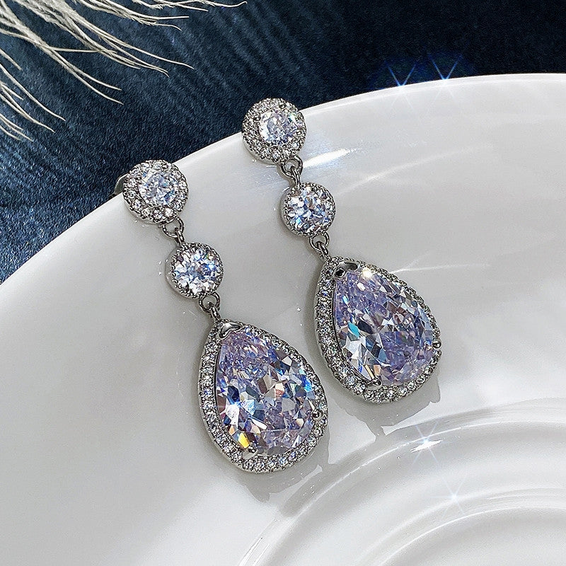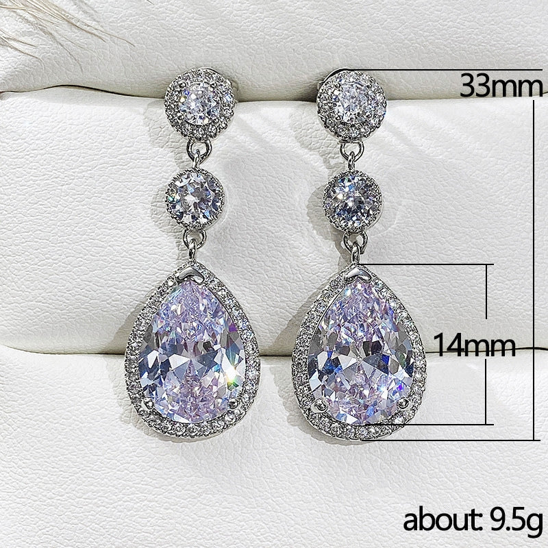 Elegant Bridal Teardrop Zircon Copper Earrings