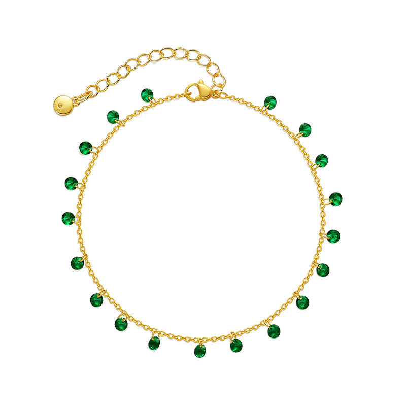 18k Gold Plated Green Zircon Anklet - French Summer Vacation Style