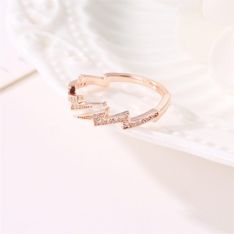 Copper Inlay Zircon Geometric Lightning Open Ring