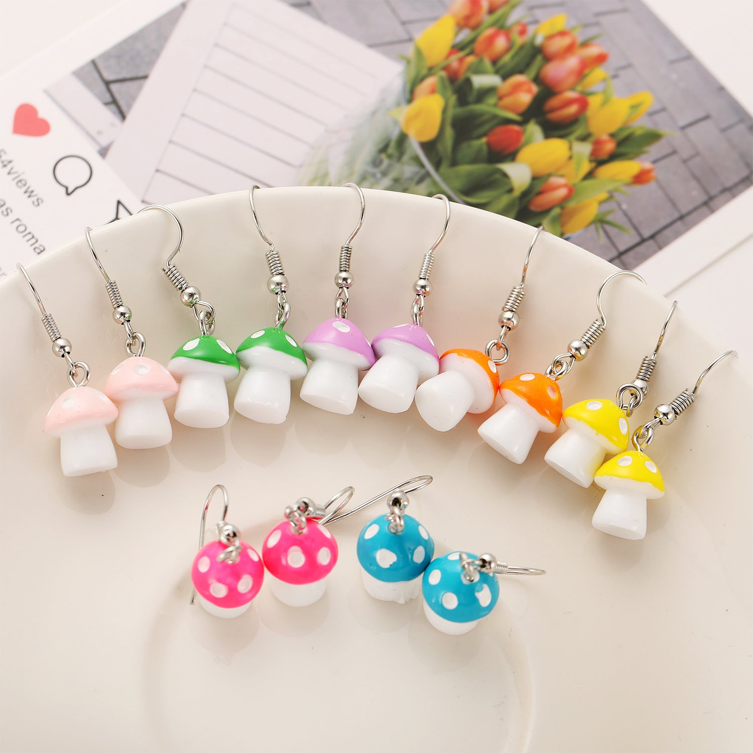 New Creative Pastoral Multicolor Spotted Mushroom Earrings
