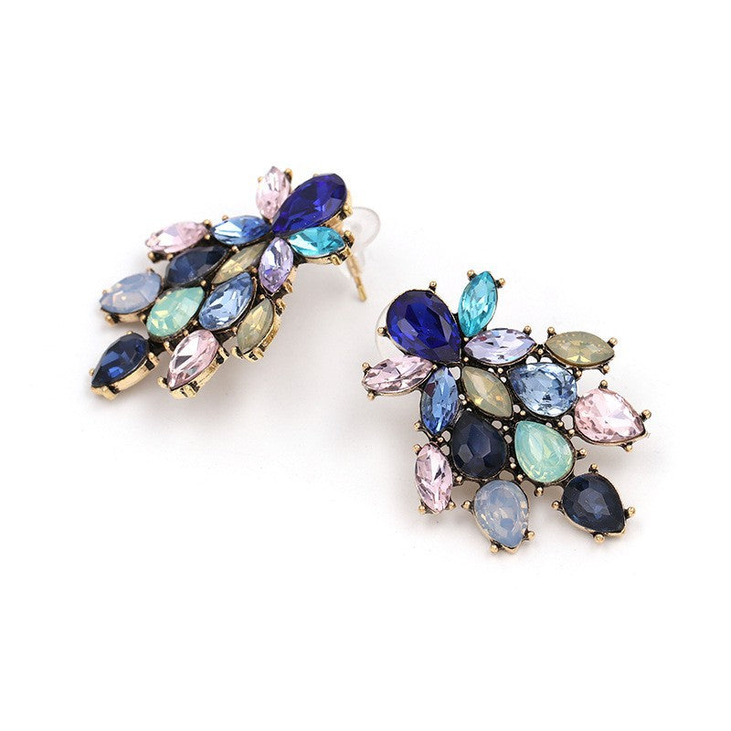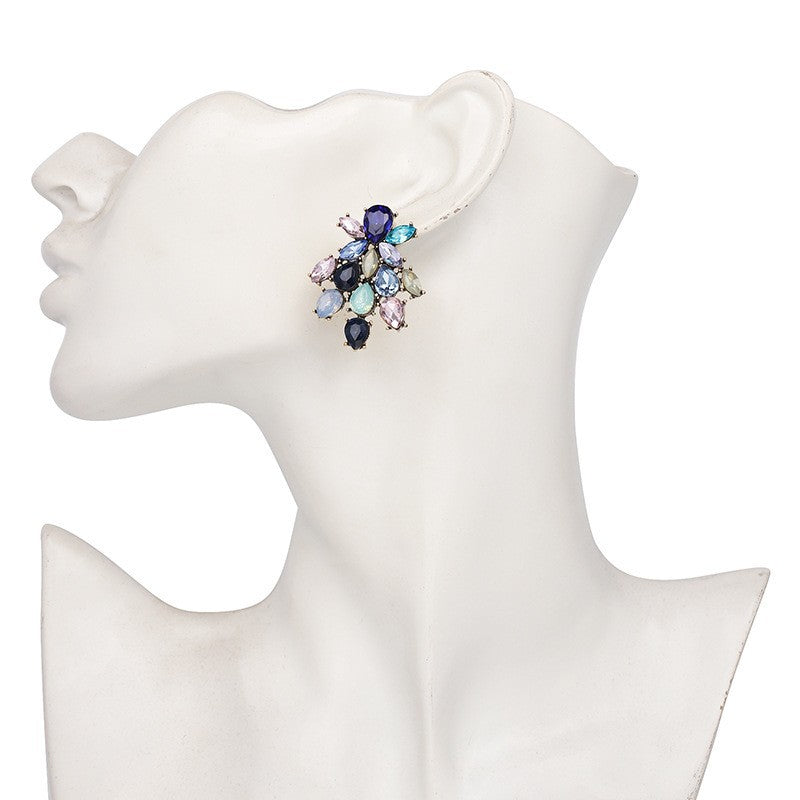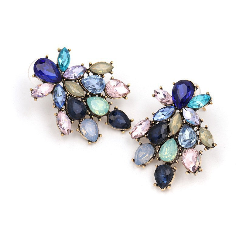 New Floral Alloy Glass Crystal Stud Earrings