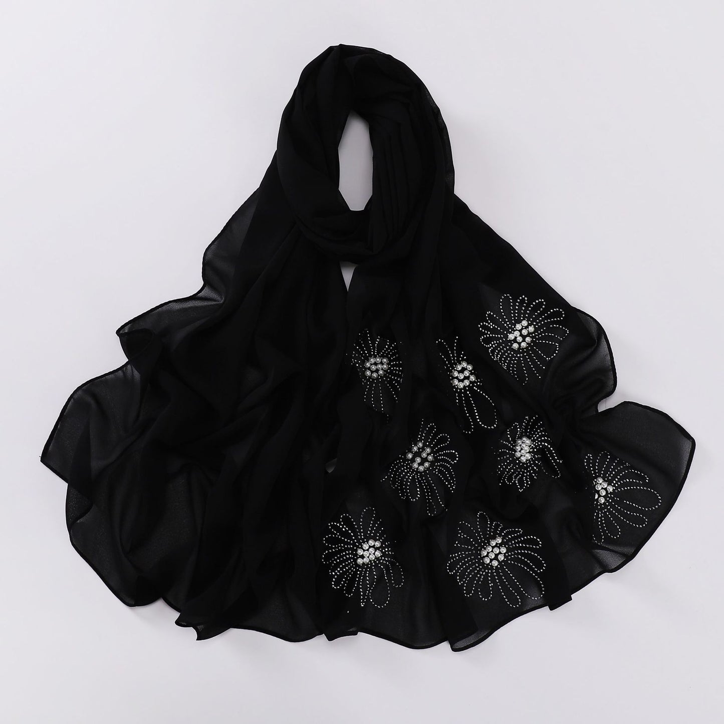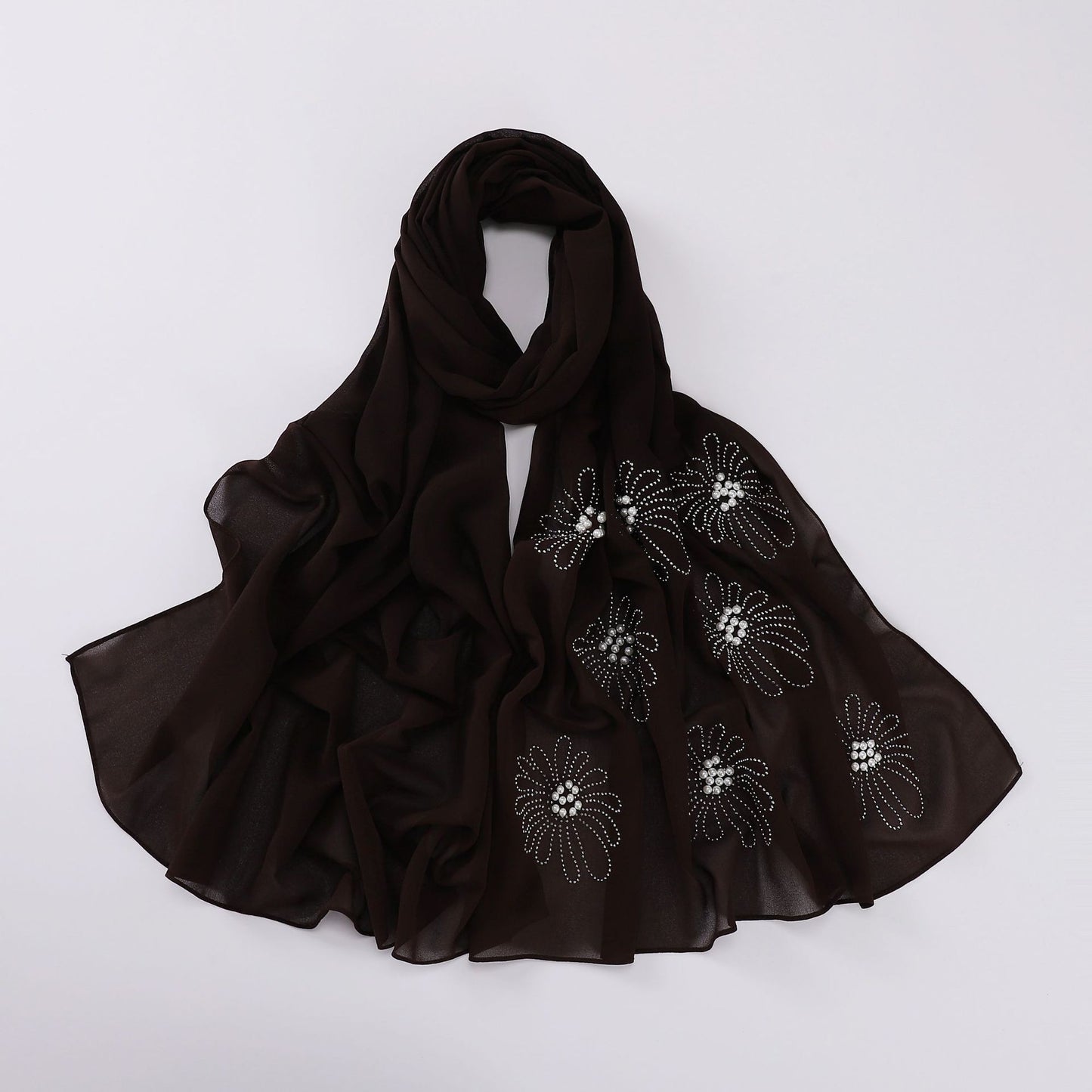 Floral Pearl Chiffon Beaded Hijab Scarf
