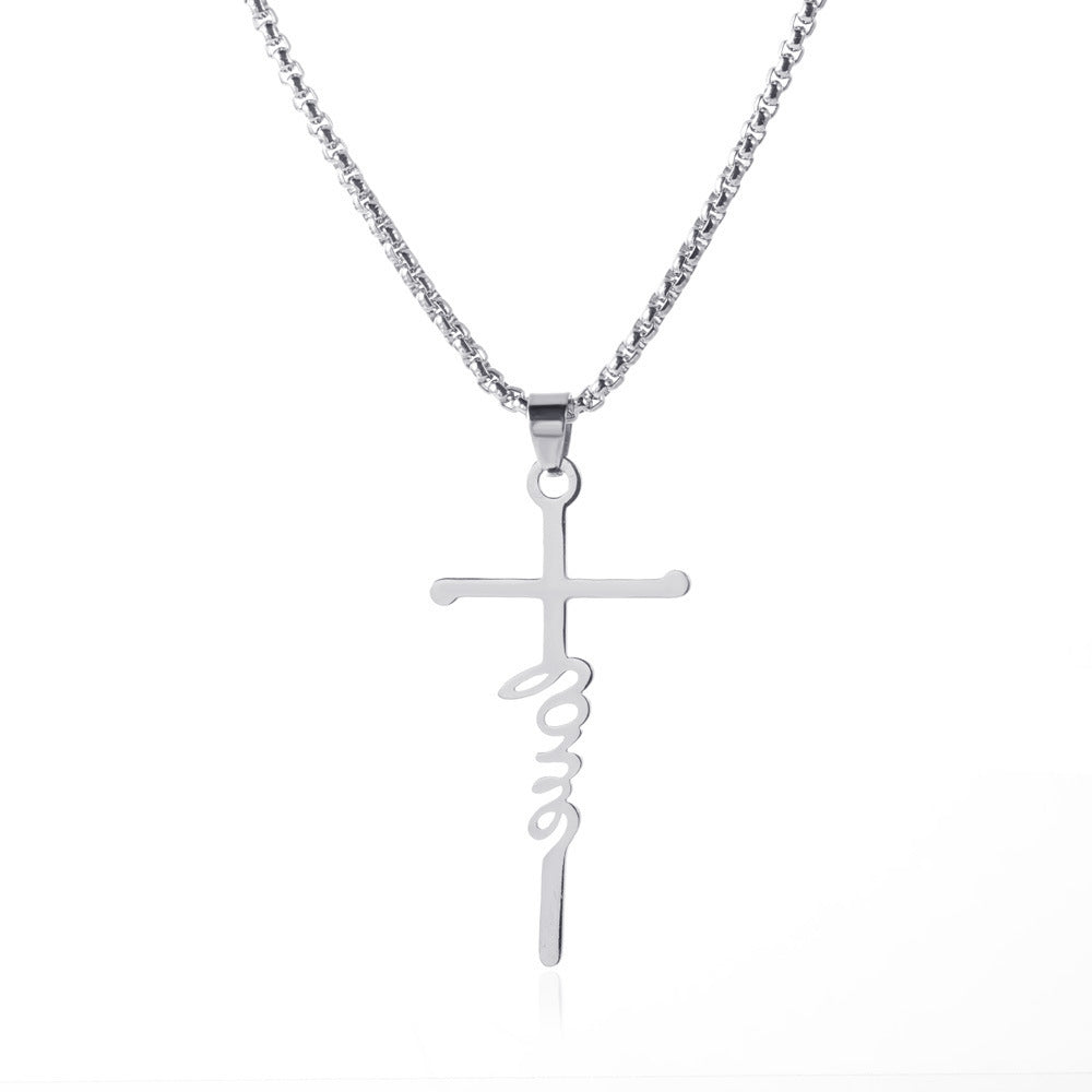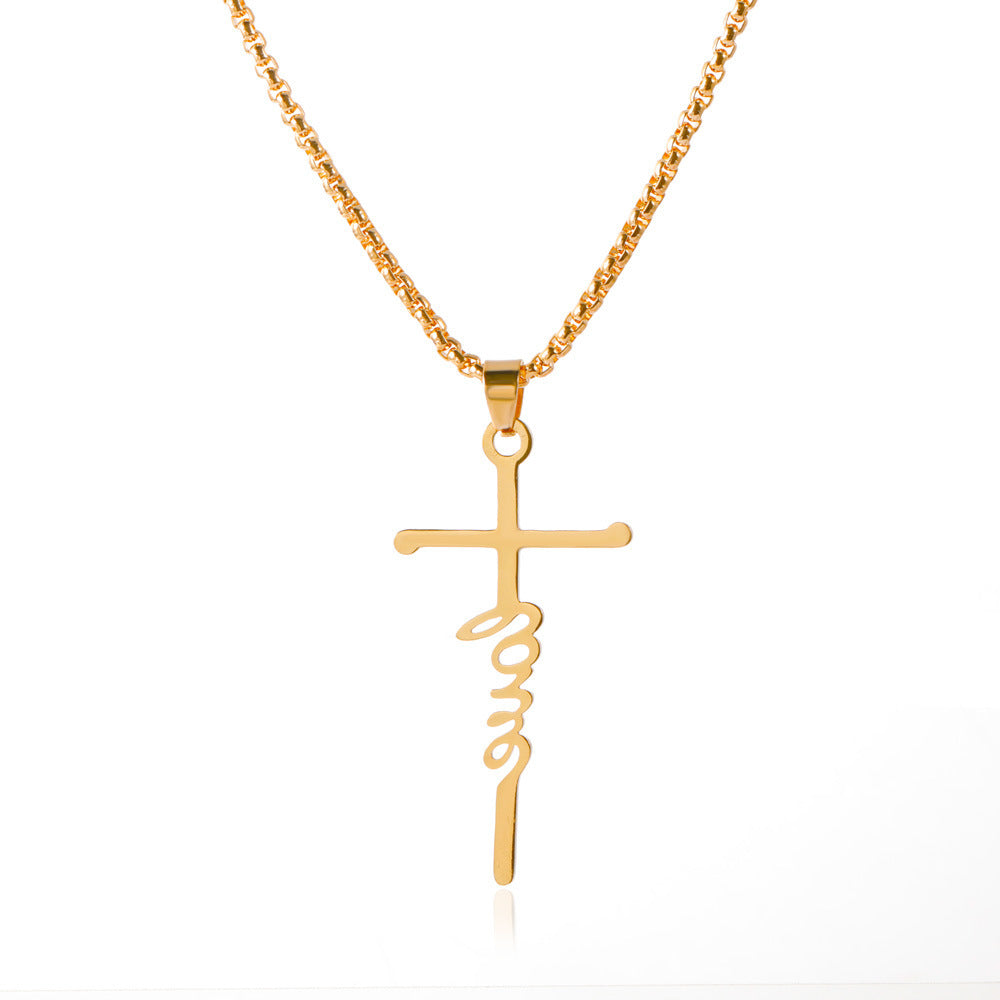 Cross Pendant Stainless Steel Letter Necklace - Punk Style Choker for Women