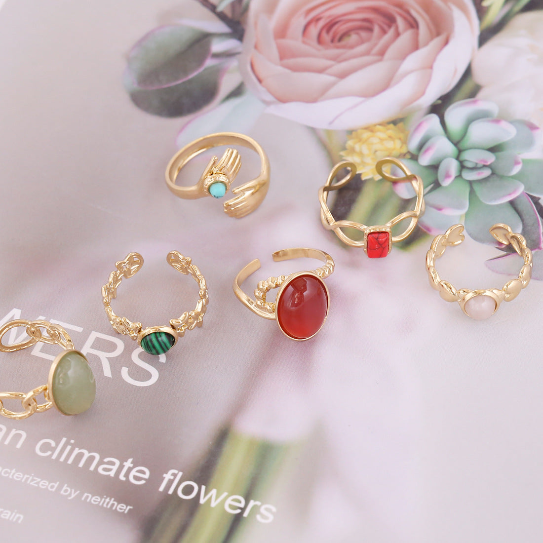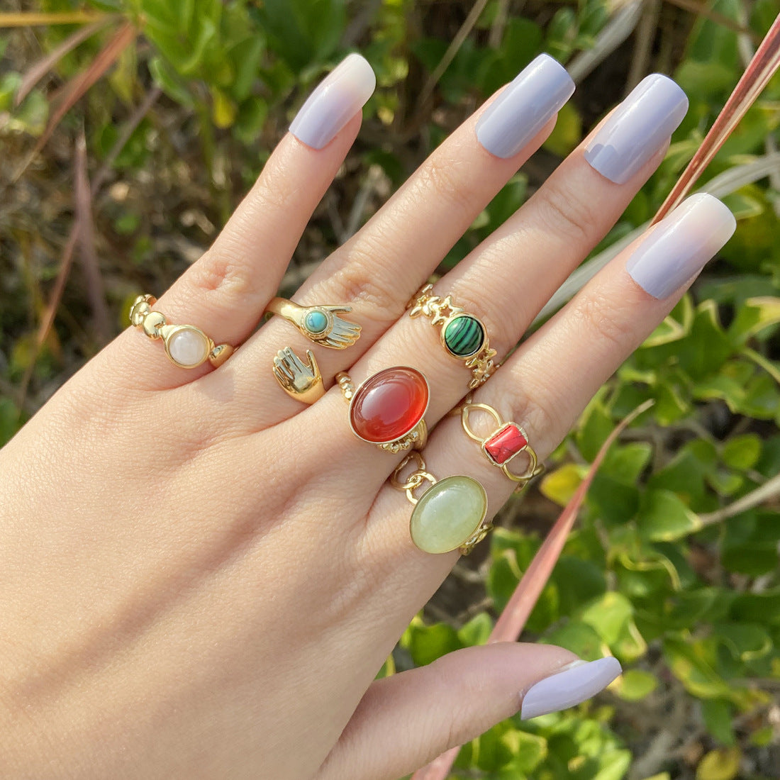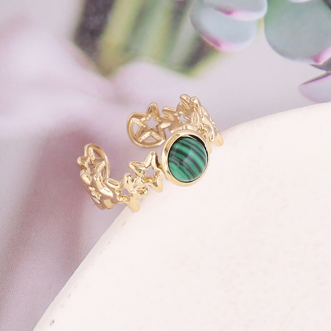 New Natural Stone Stainless Steel Geometric Fashion Ring