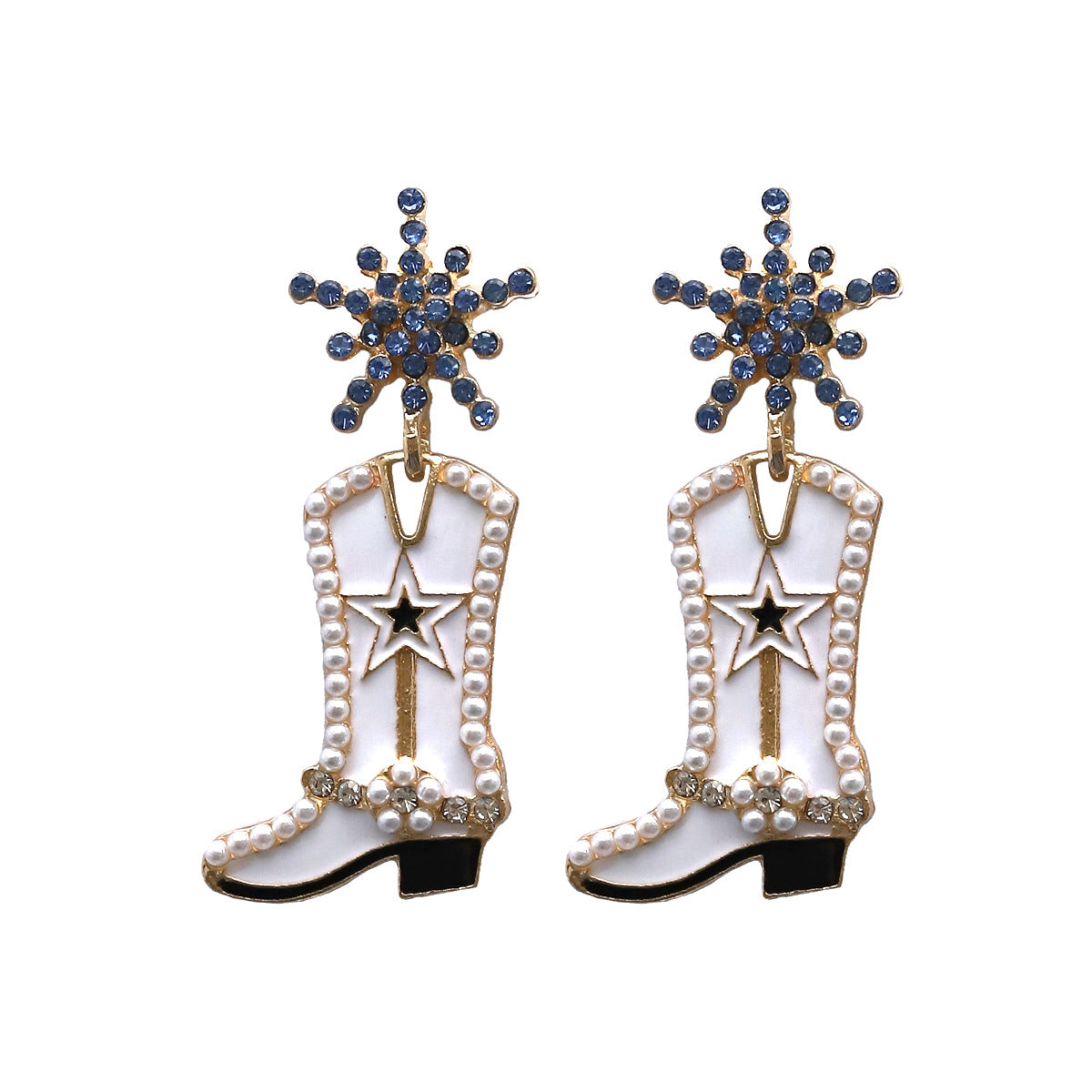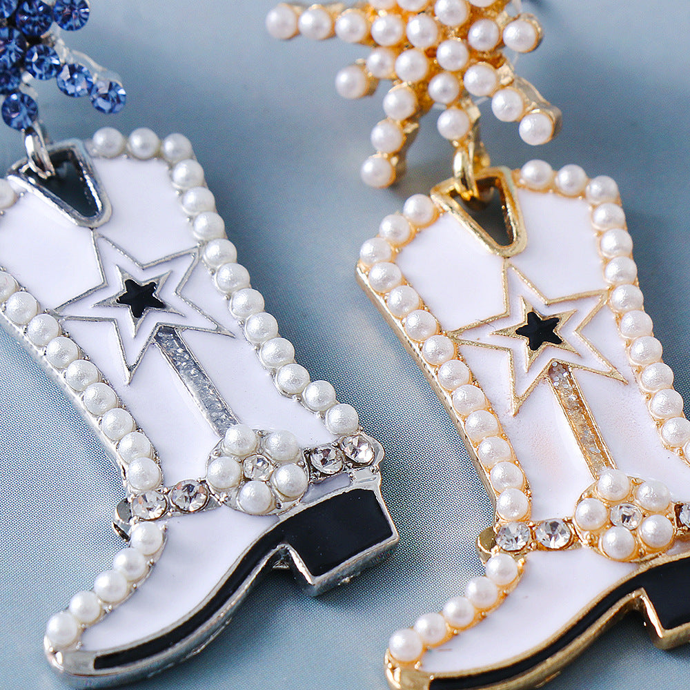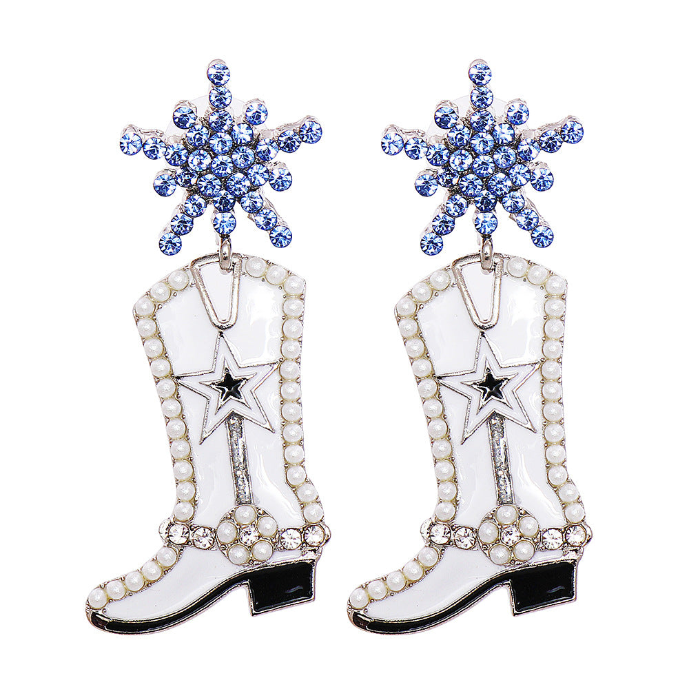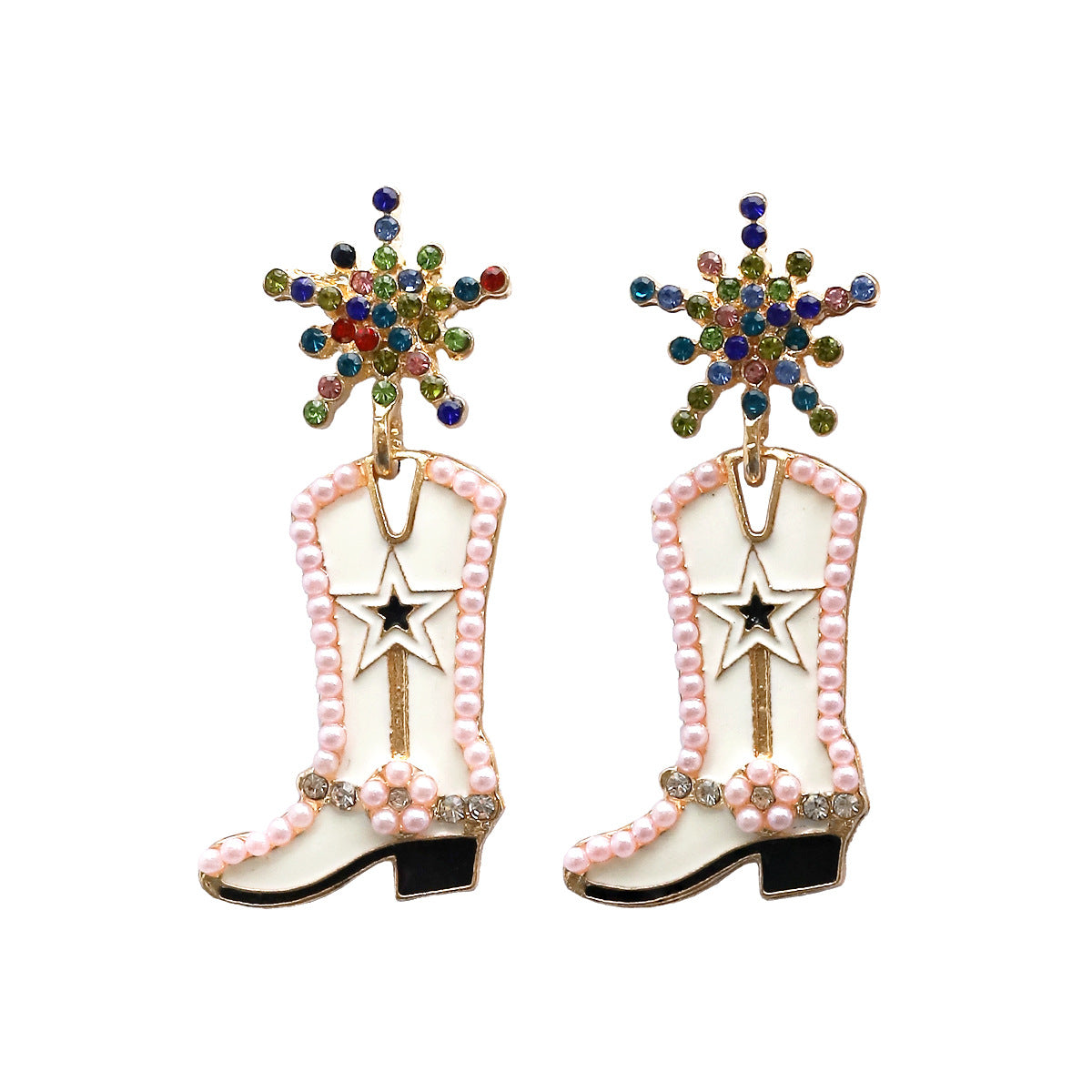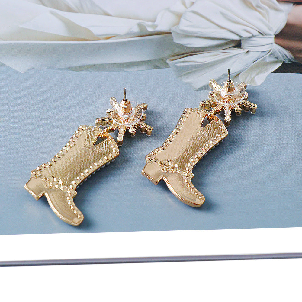 New Punk Exaggerated Martin Boots Earrings with Alloy Rhinestone Inlay