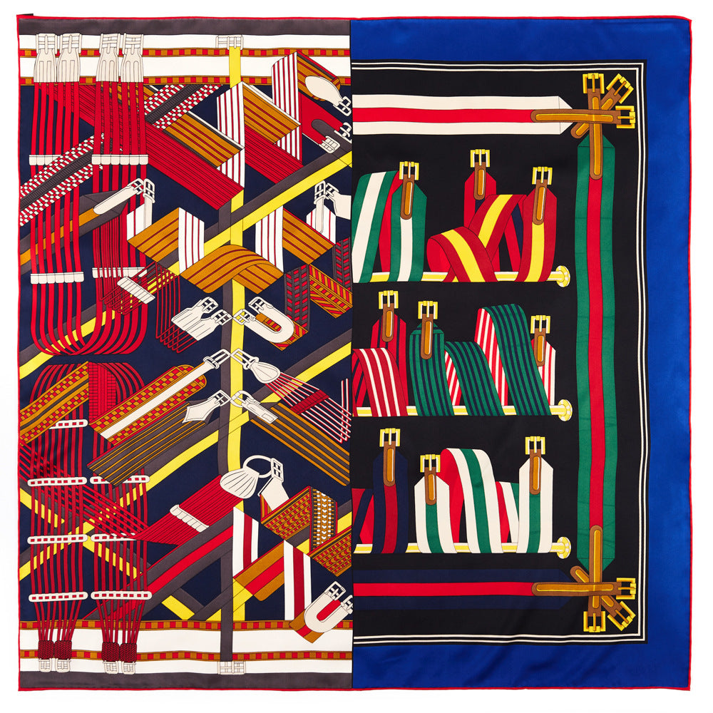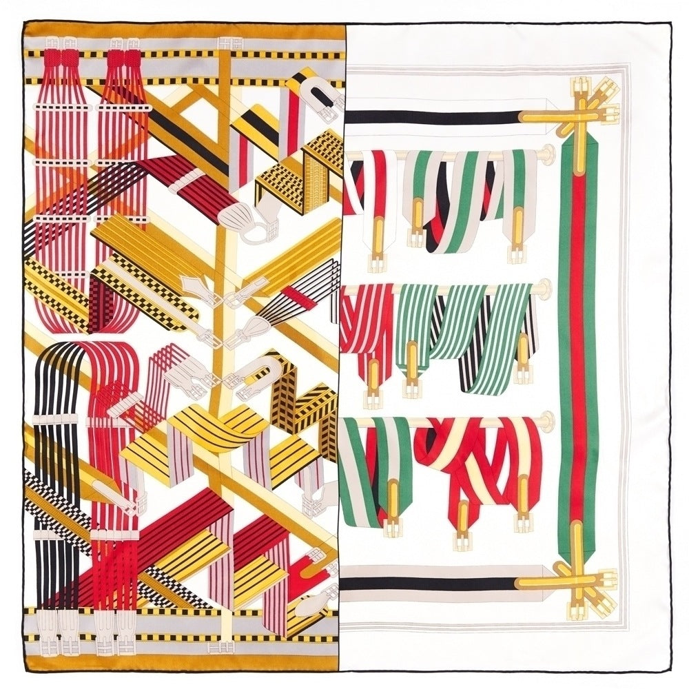 90cm Twill Silk Square Scarf with Striped Belt Print