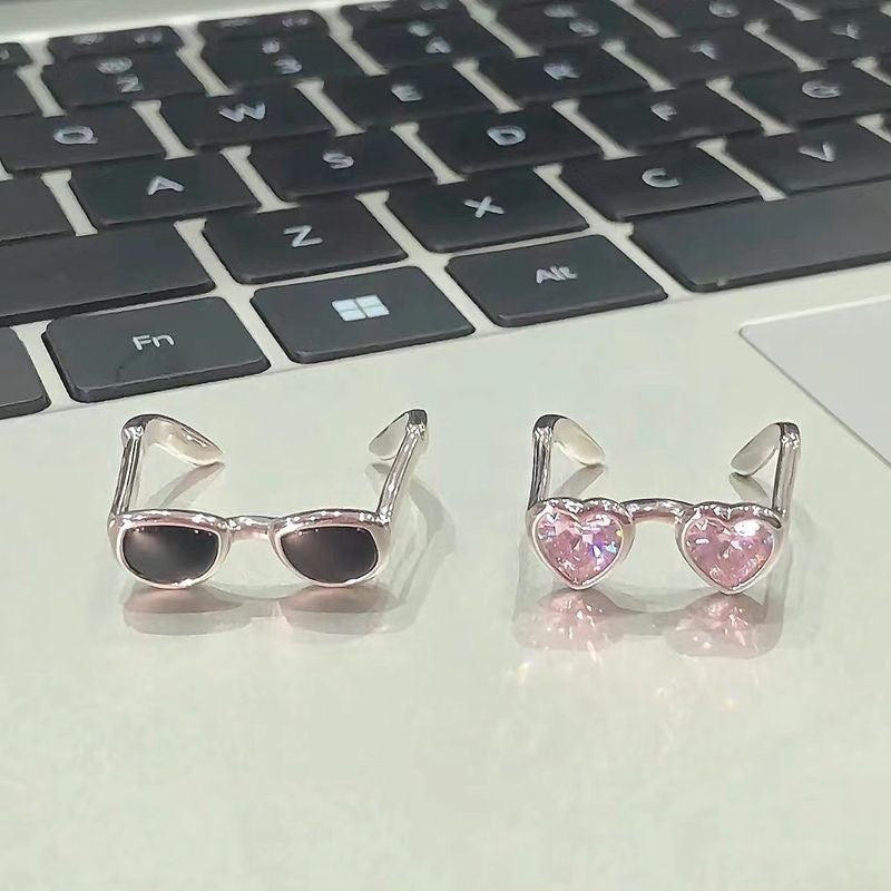 Novelty Mini Glasses Adjustable Open Metal Rings for Women